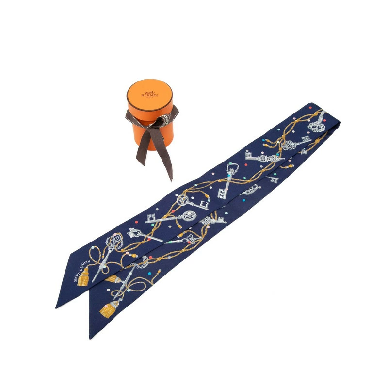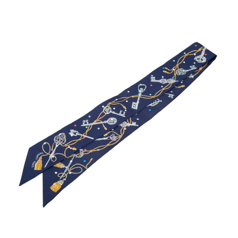 - エルメス ツイリー スカーフ ネイビー マルチカラー シルク レディース HERMES 【中古】