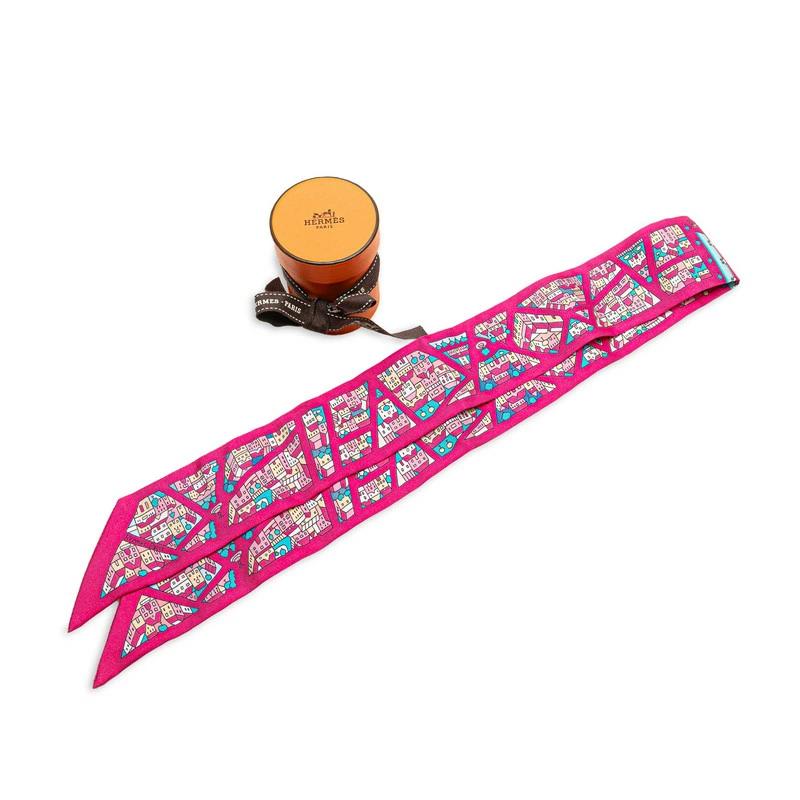 - エルメス ツイリー スカーフ ピンク マルチカラー シルク レディース HERMES 【中古】