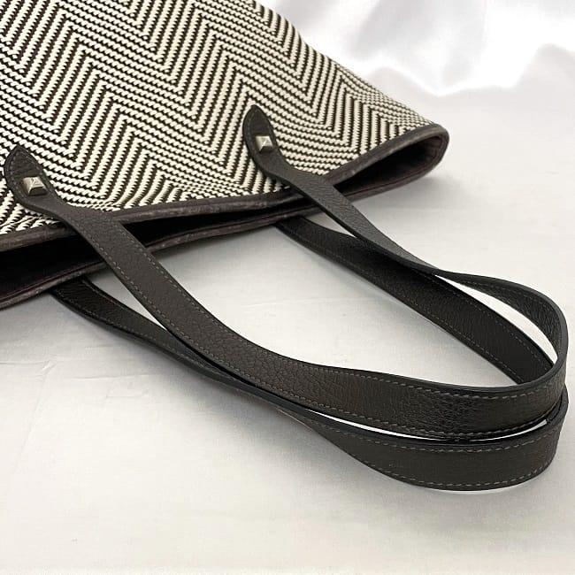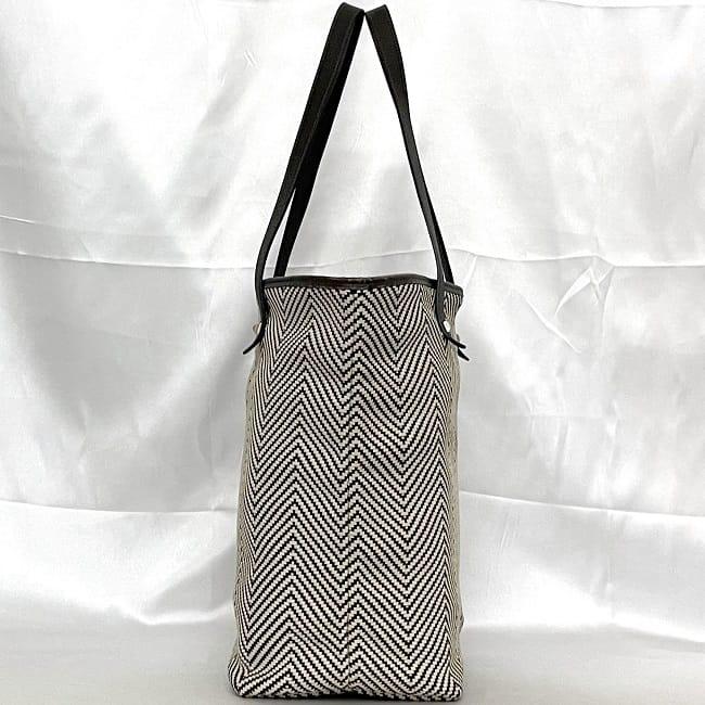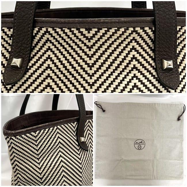 エルメス トートバッグ チェンナイ MM f-22699 ブラウン ホワイト 美品 ポリエステル レザー 中古 HERMES 軽い 茶色 肩掛け 書類 シンプル ビジネス レディース メンズ 定番 人気 ヴィンテージ キャンバスバッグ 本革 ブランド 本物 鑑定済み