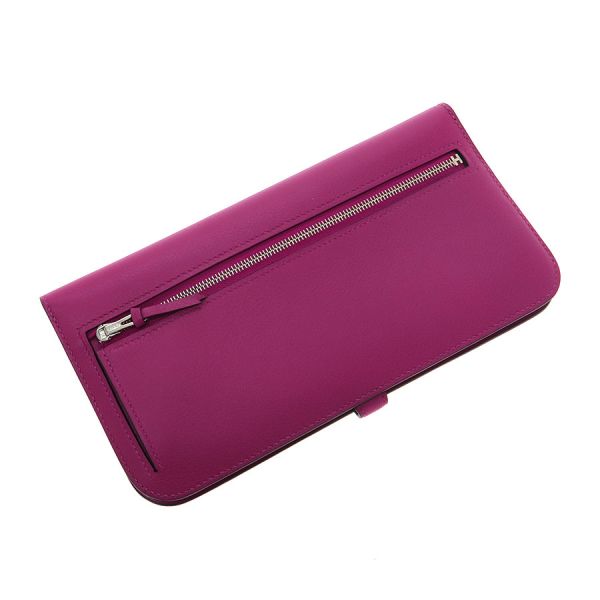 見た目と実用性を兼ね備えたエルメスの人気長財布『ドゴンロング』の入荷です。 シンプルなデザインにワンポイントのセリエ金具が全体を引き締め、上品で高級感溢れるモデルとなっております。背面にファスナータイプのコインケース、内側にはカードポケット8枚分にポケット2つと充実したスペースがございますので収納には困りませんよ!! 今回はSランクの入荷となり、全体的な使用感及びダメージ等はあまり感じられない状態となります。 保管ダメージとしてベルト部の押し跡、かぶせ蓋裏側の押し跡等を感じる程度となります。 上品で華やかなパープル系の色合いに加え、金具部には保護シール貼ってある等良いコンディションのこのお財布、おすすめです!!