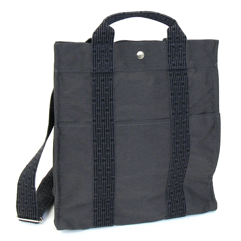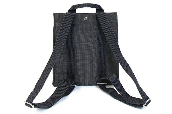 エルメスバックパックエールラインアドMMグレーキャンバス中古リュックロゴレディースHERMES