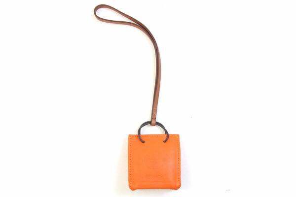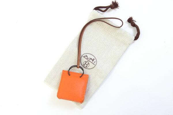 エルメスバッグチャームサックオランジュフーゴールドアニョーミロヴォースイフトD刻印2019年製造中古キーホルダーロゴオレンジバッグアクセサリーレディースHERMES