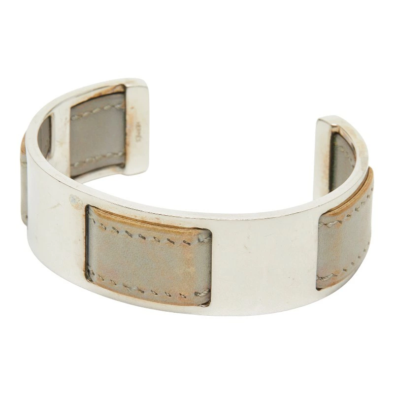 - エルメス バングル シルバー グレー メタル レザー レディース HERMES 【中古】
