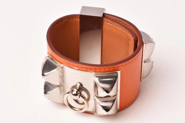 Hermes Bangle/Bracelet HERMES Medor Collier de Chien Leather Orange/Silver [Used] [Reused Brand Coupon] Limited number available at participating stores!