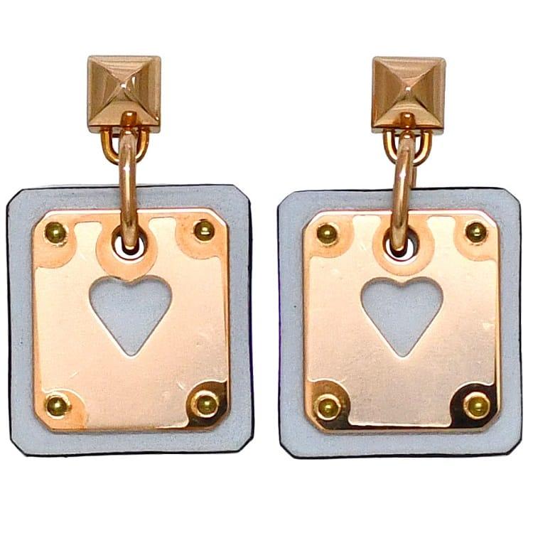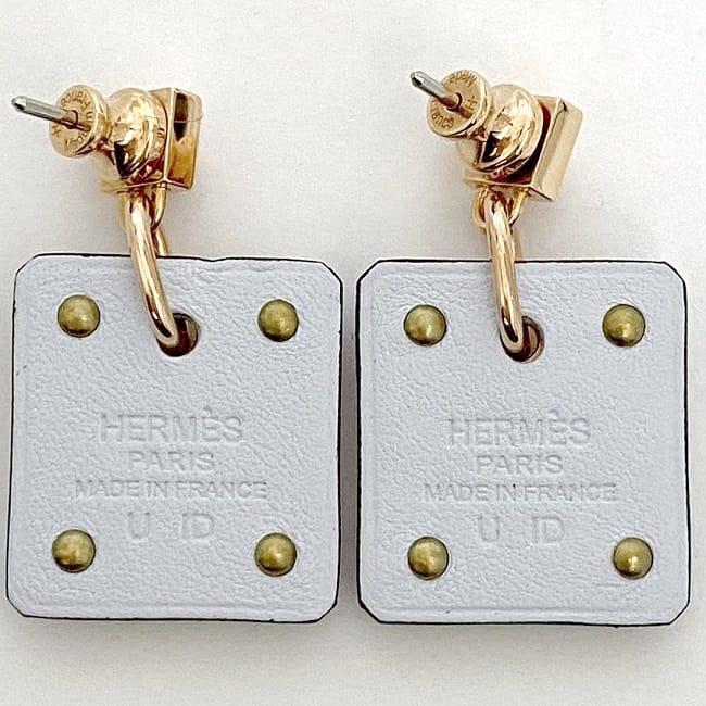 エルメス ピアス アス ドゥクール f-22435 ピンクゴールド ライトブルー エースオブハーツ アスドゥクール 美品 ハート GP レザー ヴォースイフト 中古 U刻印 HERMES ハート 金色 水色 アクセサリー ジュエリー 耳飾り スイング 本革 GP ブランド 本物 鑑定済