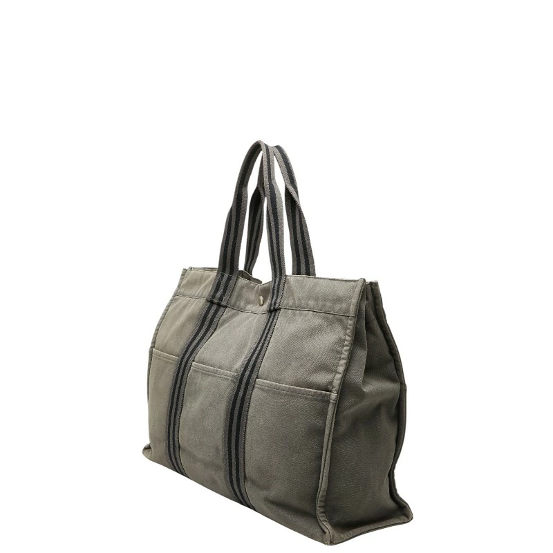 - エルメス ハンドバッグ トートバッグ グレー ブラック キャンバス レディース HERMES 【中古】