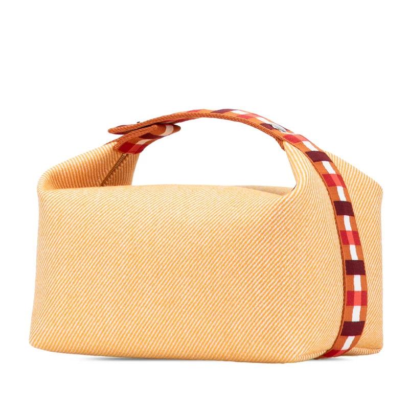 Pre-owned Hermès Bride à Black au Carré GM Handbag Pouch in Fauve Orange Cotton. Women's.