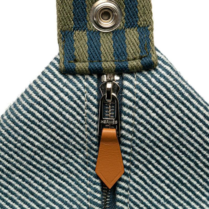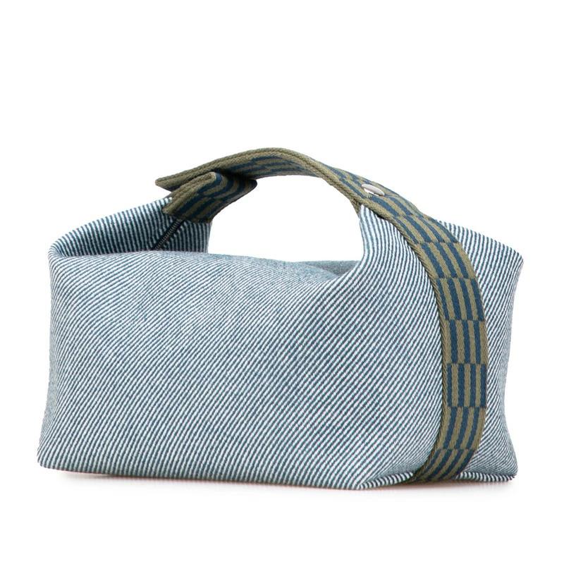 Pre-owned Hermès Bride A Black GM Handbag Pouch in Navy and Khaki Toile Officier. Women's.