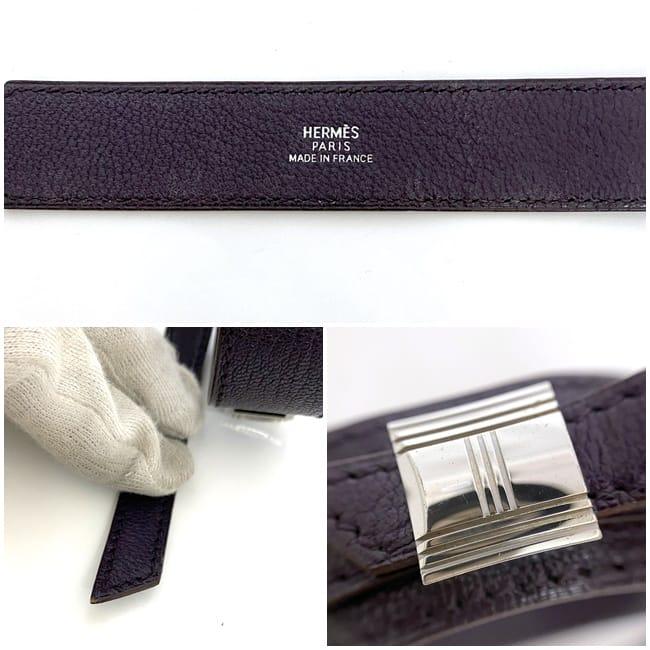 エルメス ブレスレット アルテミス ec-22464 パープル 美品 M レザー 中古 □F刻印 HERMES シルバー金具 アクセサリー ヴィンテージ シンプル ブレス 革 紫色 女性 レディース 小物 お洒落 エレガント ロゴ ブランドアクセサリー 上品 ブランド 本物 鑑定済み