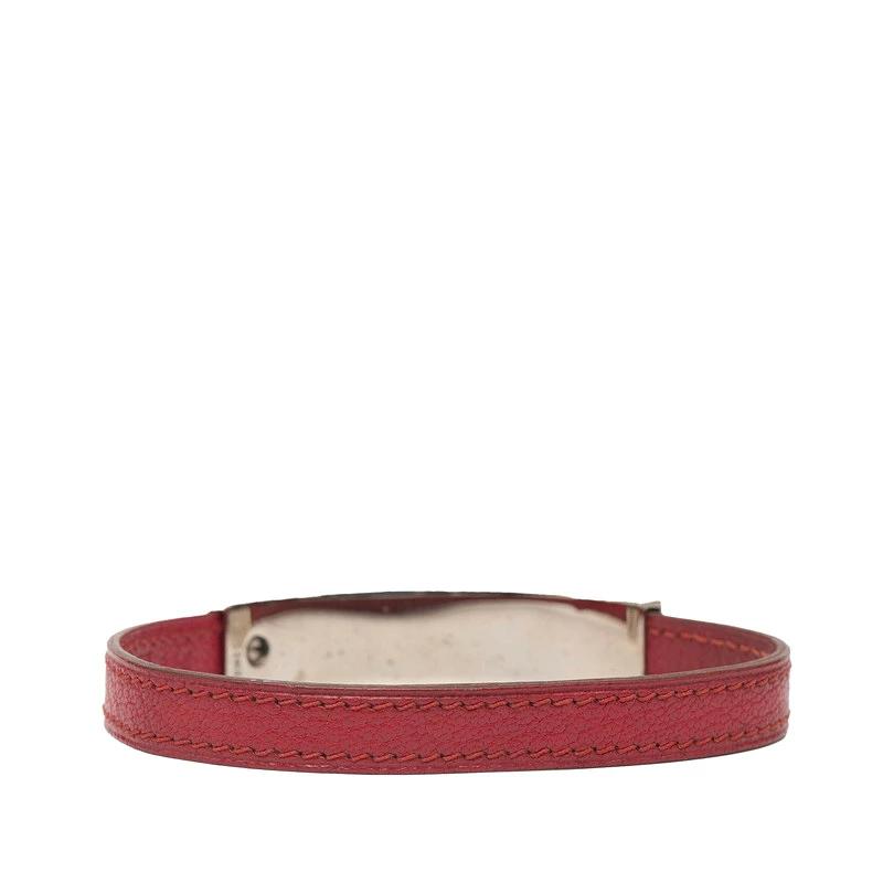 Pre-owned Hermès Puspus Bracelet/Bangle in Pink with Silver Hardware, Leather, and Metal. Women's.