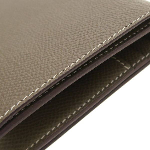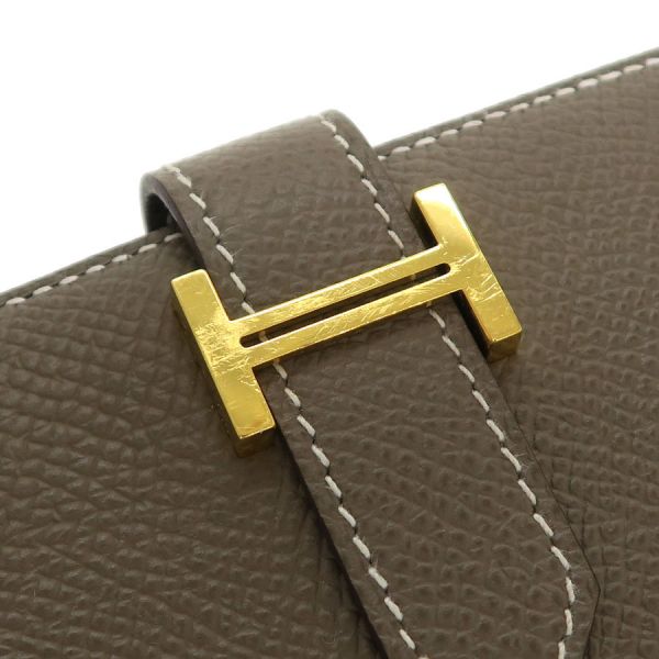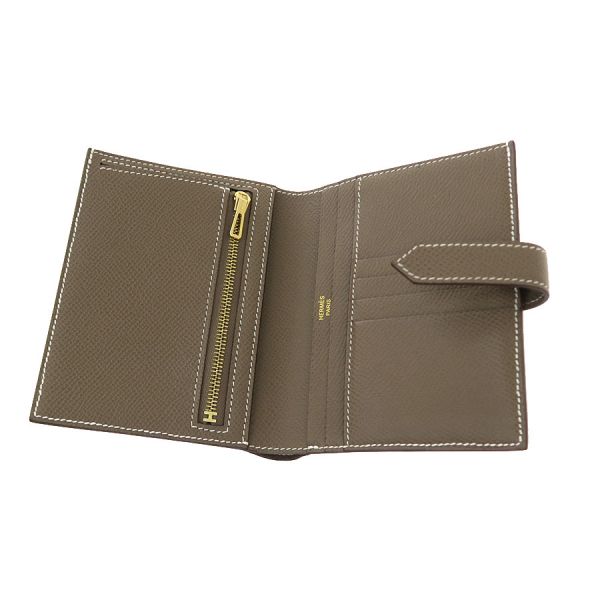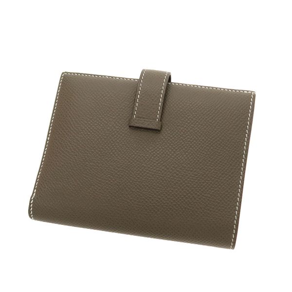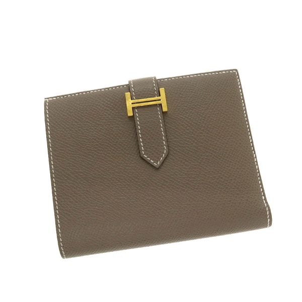 エルメス定番人気のコンパクトウォレット『ベアン・コンパクト』が入荷いたしました☆カラーは定番人気のエトゥープ。エルメスならではの洗練されたシンプルなデザインは世代やスタイル問わず末永くご愛用いただけます。マチが薄いスリムなデザインなので小さめバッグでもかさばらずに持ち運びできるのも魅力です。間口はベルト開閉で、札入れ×1、コインケース×1、カードポケット×4、オープンポケット×4とコンパクトながら充分な収納力がございます。 状態はBランクでの入荷になり、僅かな型崩れ、角やフチの僅かなスレ、金具小傷、コインポケット内の僅かなコイン跡汚れ、ベルトの僅かなスレ、内側のスレがございます。大きく目立つようなダメージは抑えられおり、AランクよりのBランクとなります。