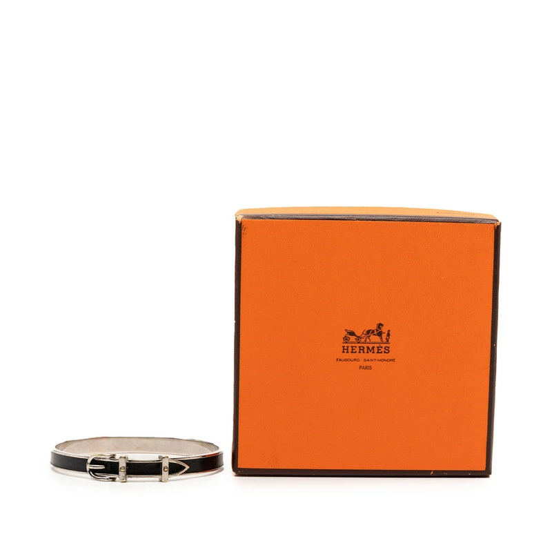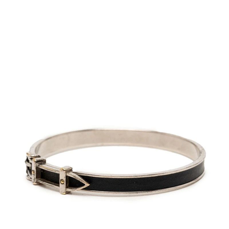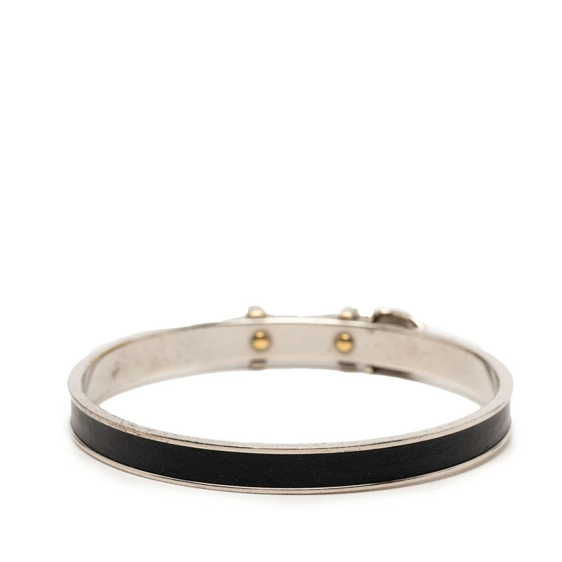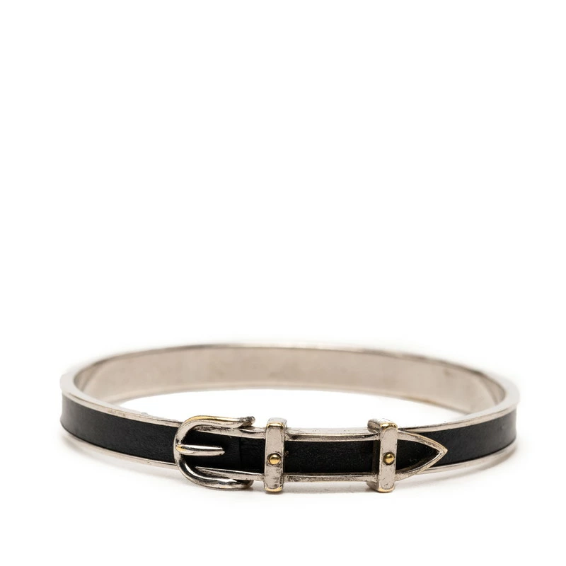 - エルメス ベルトモチーフ バングル シルバー ブラック メタル レザー レディース HERMES 【中古】