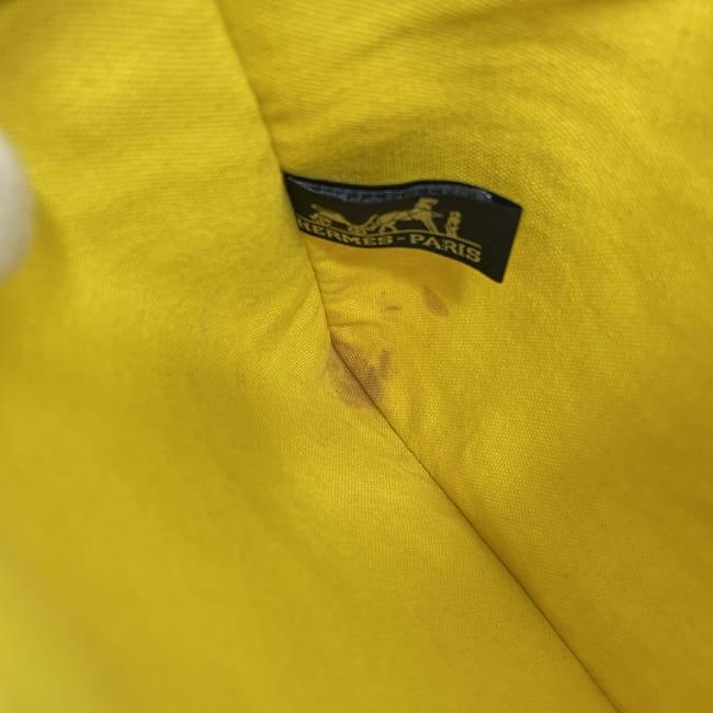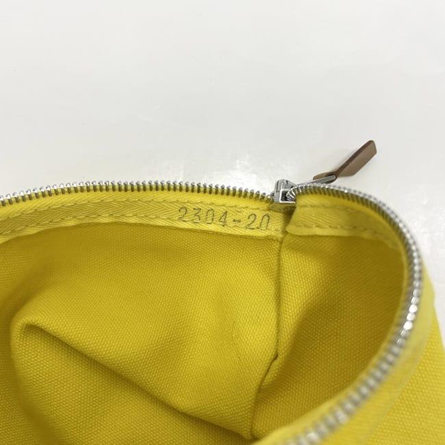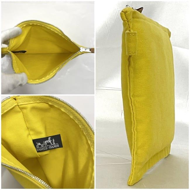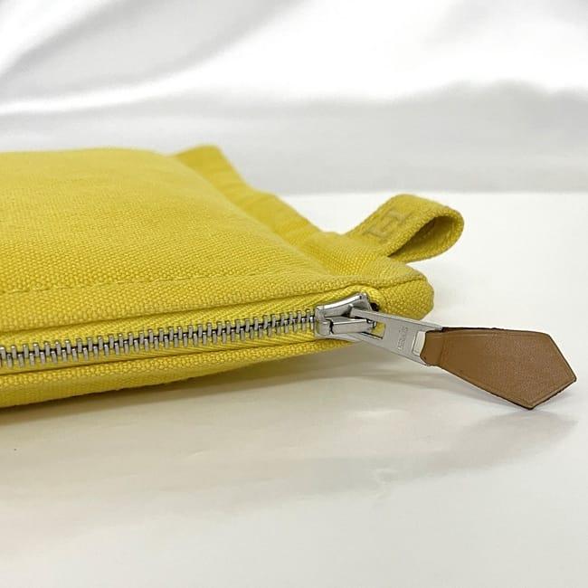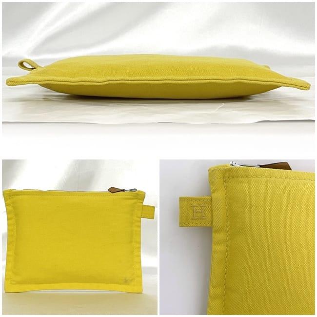 エルメス ポーチ ec-23597 イエロー 美品 キャンバス レザー 中古 HERMES ファスナー Hロゴ 刺繍 マチなし 定番 人気 レディース メンズ 女性 黄色 黄 革 薄い 薄型 コンパクト ミニ 小さい 小物 ロゴ シンプル お洒落 無地 高級感 上品 ブランド 本物 鑑定済み