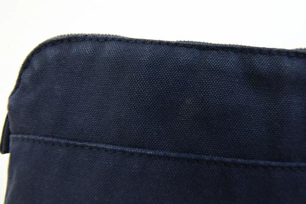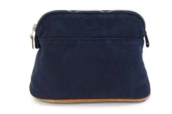 エルメスポーチボリードポーチPMネイビーコットンキャンバスレザー中古Hロゴ半月型コスメマルチポーチ化粧品レディースHERMES