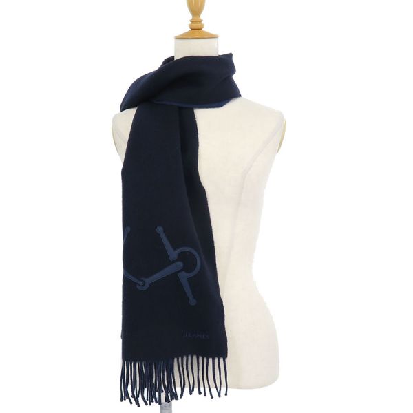 ■採寸41×165■素材本体:カシミヤ100% 皮革部分:羊革■コメントエルメスからマフラーが入荷しました。紺のカシミヤ生地にエルメスらしいホースビットのモチーフがレザーパッチであしらわれた、素敵なマフラーです☆状態は全体にカシミヤ特有の起毛感、畳み跡、端やフリンジにやや毛羽立ち等が見受けられる為Bランクでのご紹介です。目立つ汚れやダメージはないのでAランク寄りのお品です。まだまだ問題なくご着用いただけます◎