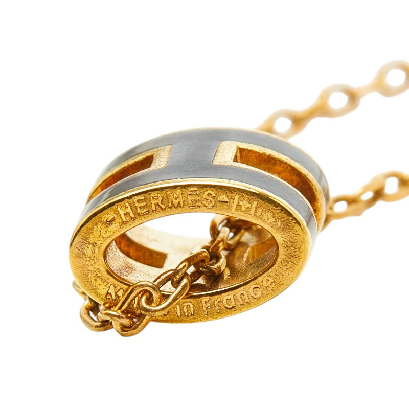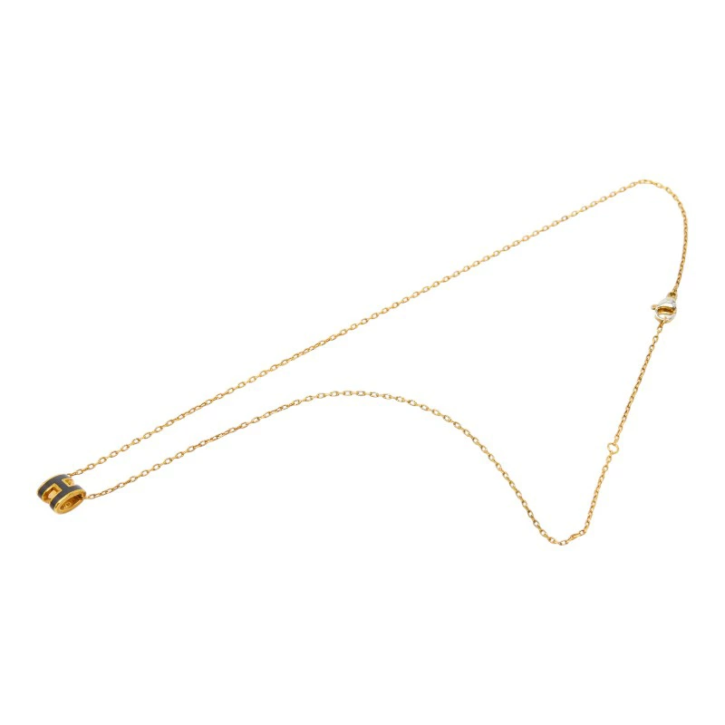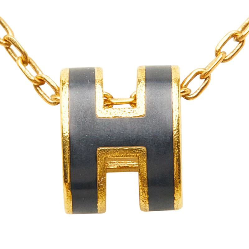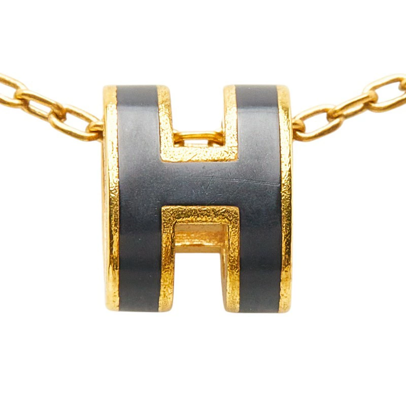Hermes Mini Pop H Necklace, Gold and Black Plated, Women's, HERMES [Pre-owned]