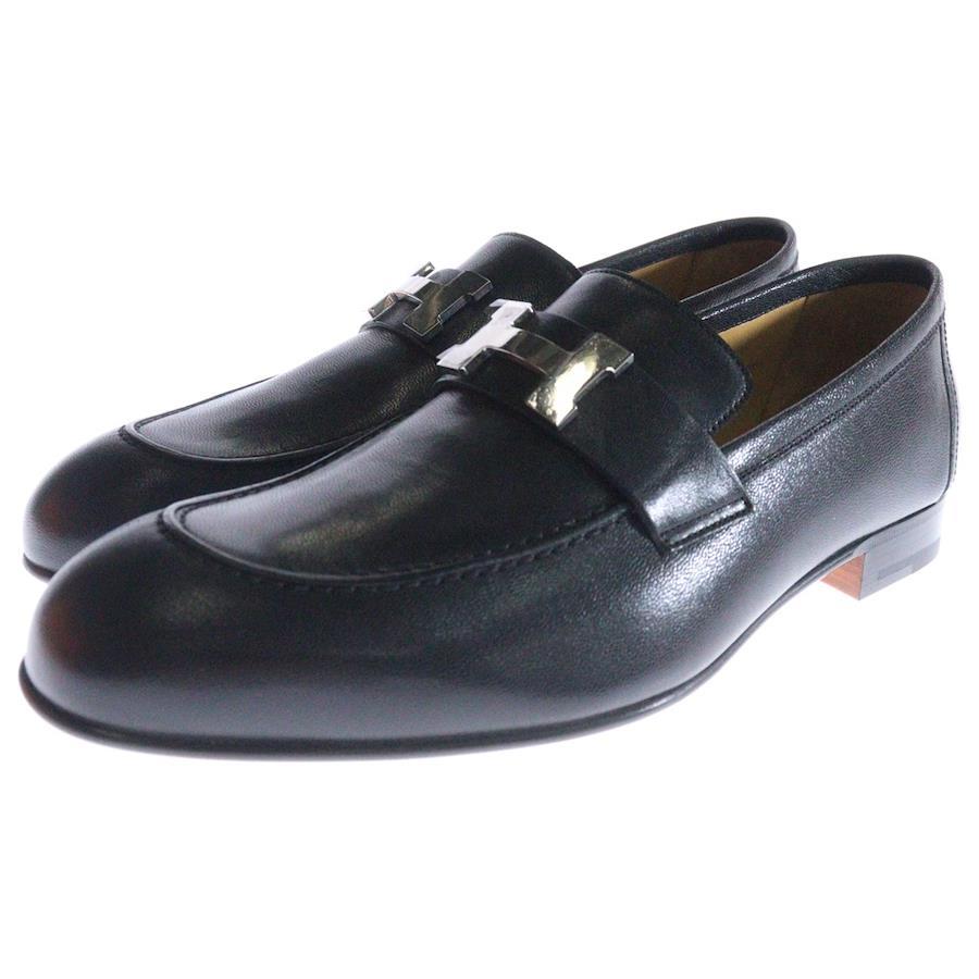[モデル]モカシン パリ シルバー金具 レザー ローファー ブラック AF172368ZA2402