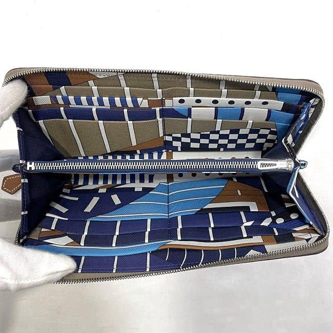☆---- 商品について ----☆エルメス ラウンドファスナー 長財布 アザップ シルクイン f-22990 ベージュ エトゥープ 美品 財布 レザー ヴォーエプソン シルク 中古 Z刻印 HERMES ロング ウォレット シンプル 箱付 本革 レディース メンズ 定番 人気 ブランド 本物 鑑定済み