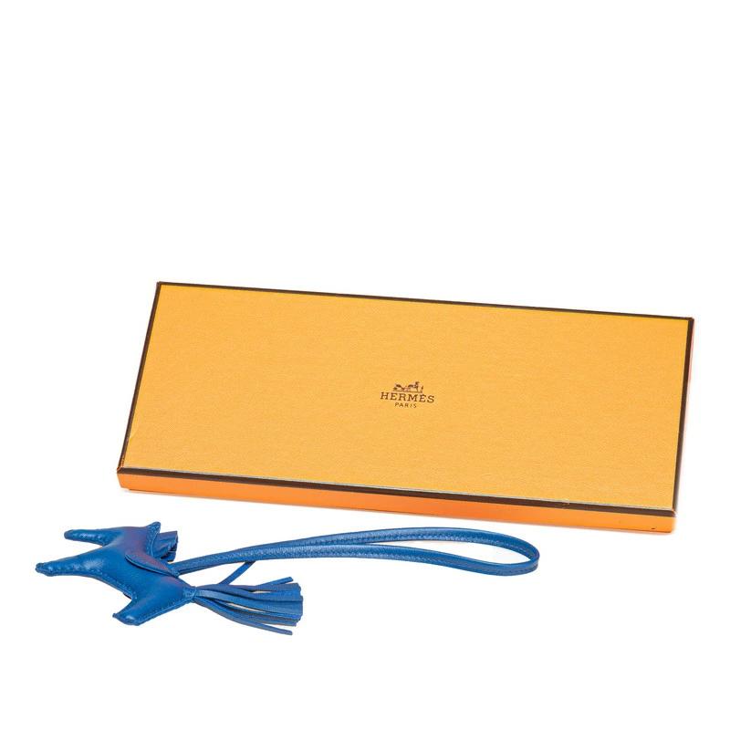 Pre-owned Hermès Rodeo PM bag charm in Blue Zanzibar with blue Anjou Milo leather. Women's.