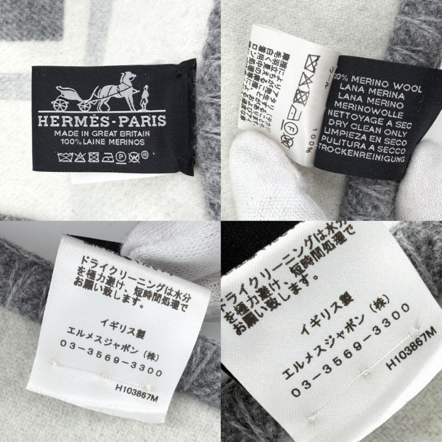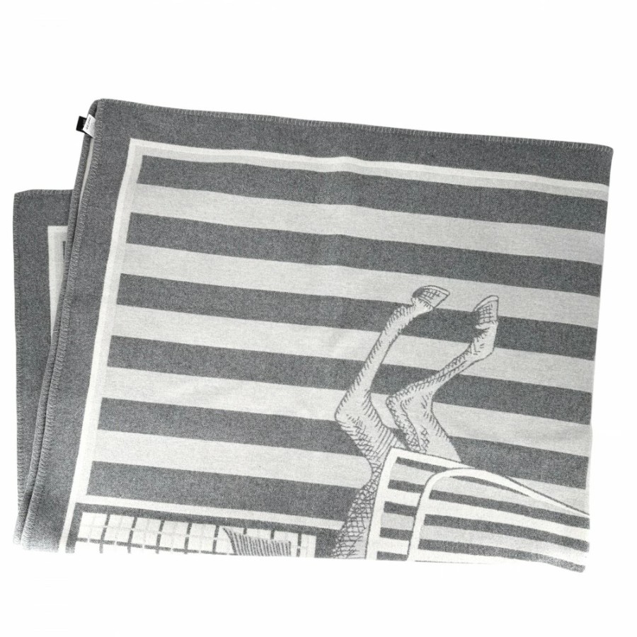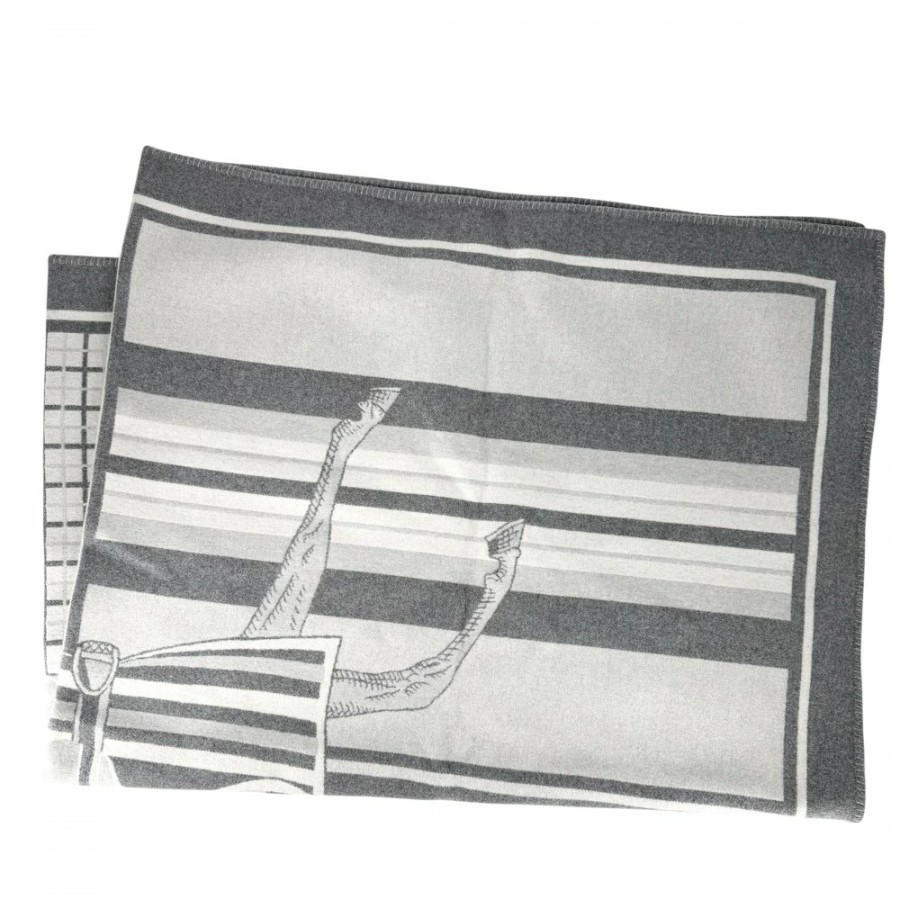 Hermes Unisex Large Plaid Jacquard Blanket with Horse Design, HERMES H103867M, Wool, Gray, Autumn/Winter, Excellent Condition [Pre-owned]