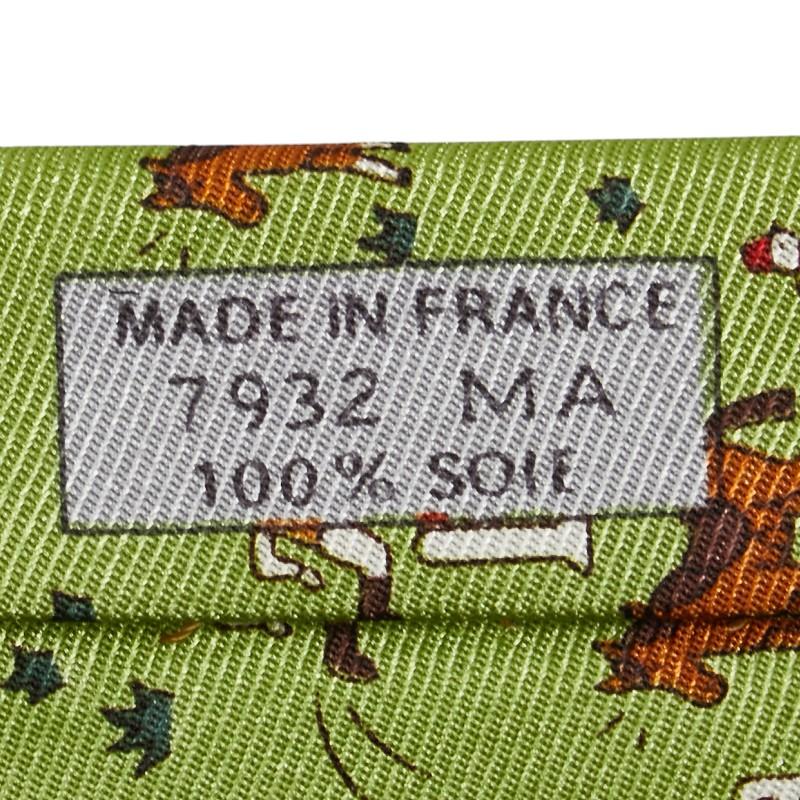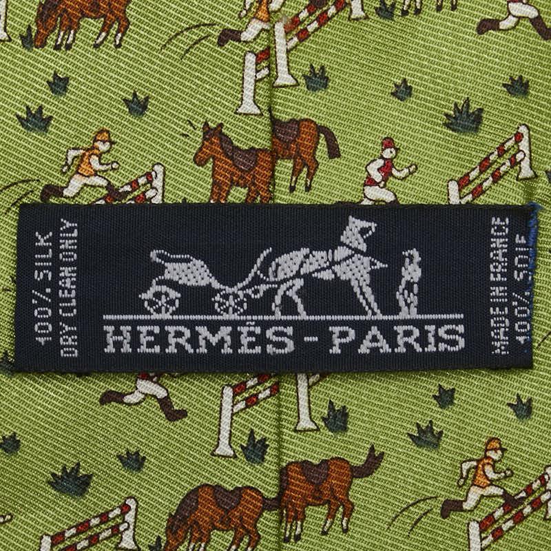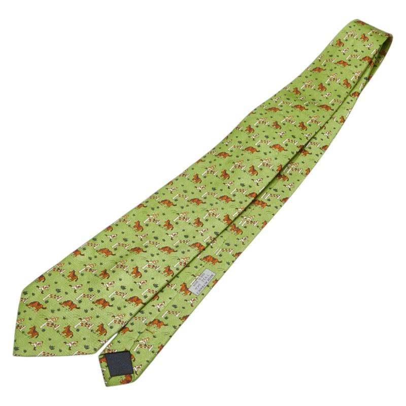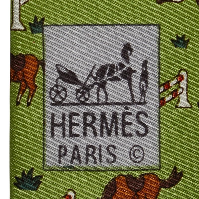 Pre-owned Hermès Horse Equestrian Motif Tie in Green, Brown, and Multicolor Silk for Men