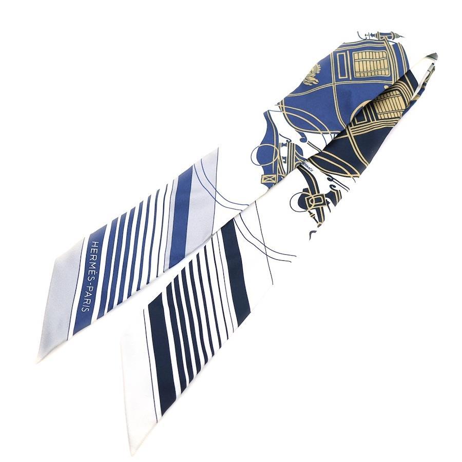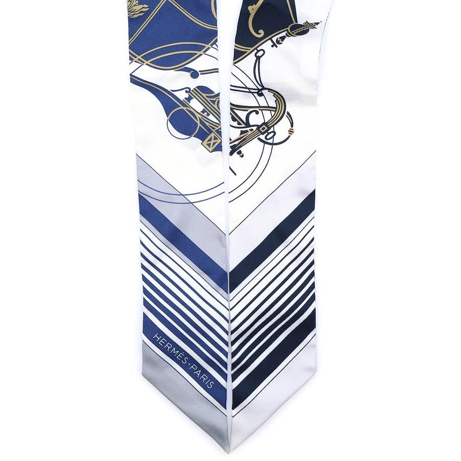 [モデル]EX-LIBRIS ツイリー スカーフ ホワイト×ブルー シルク