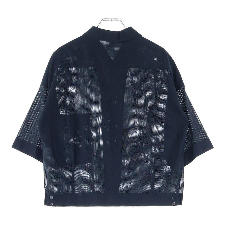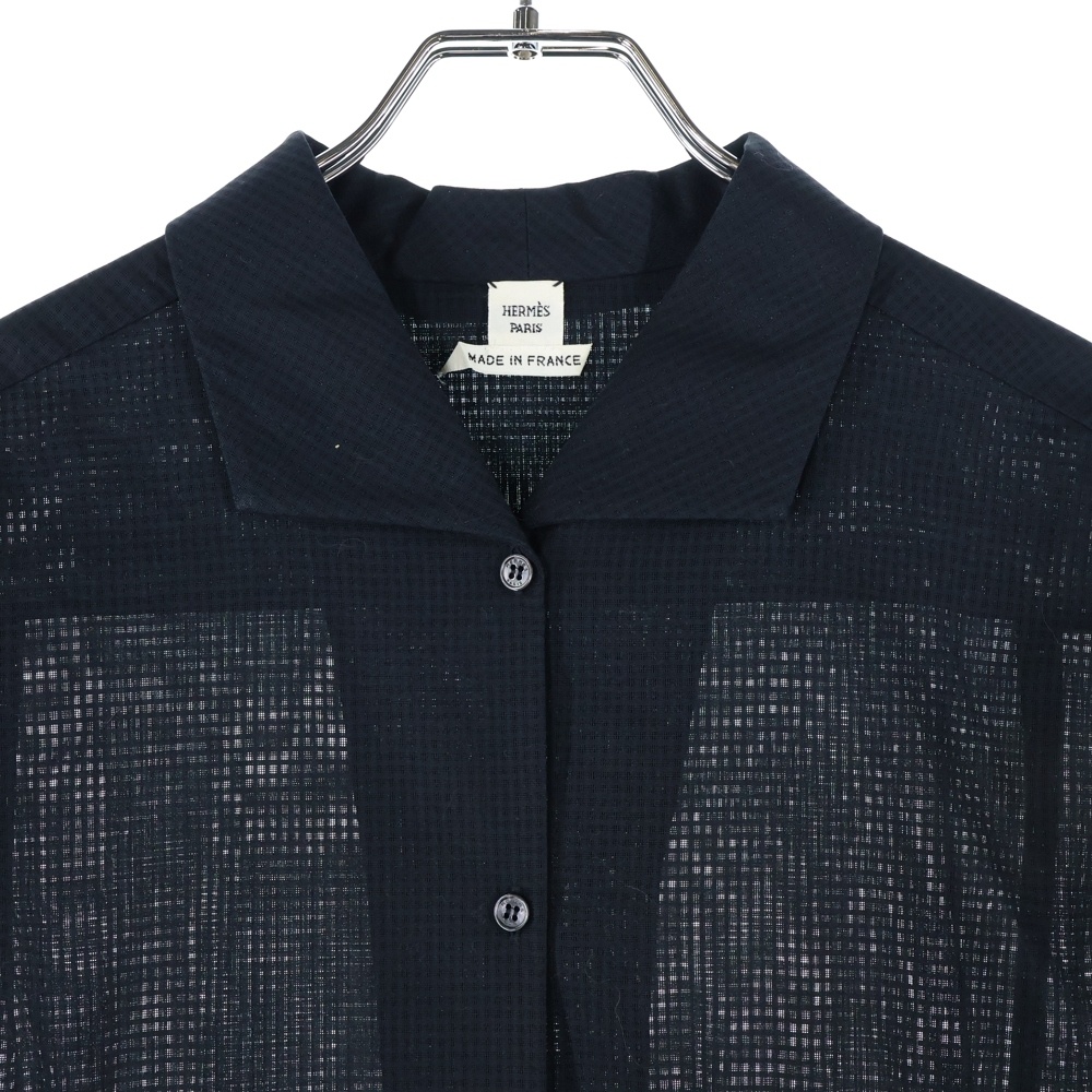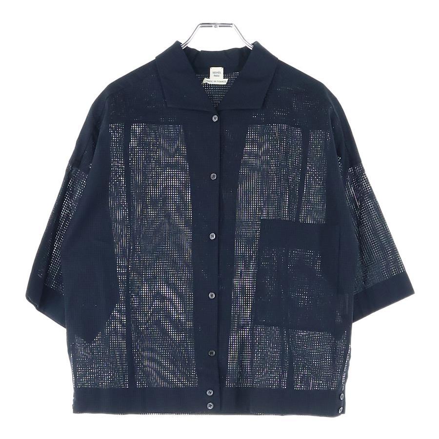 [モデル]Hロゴ刺繍 シースルー コットン 半袖シャツ ブラック レディース