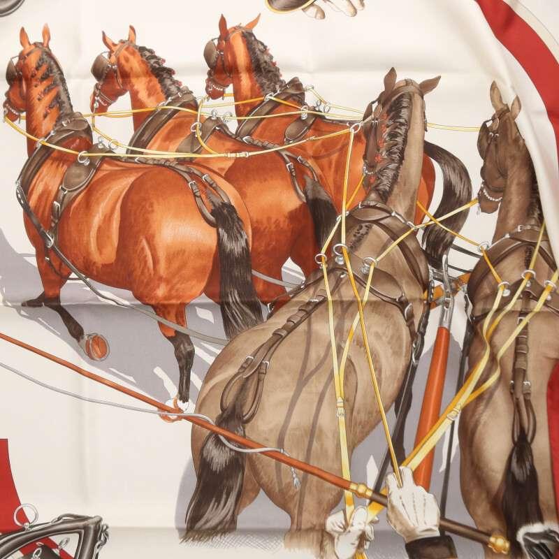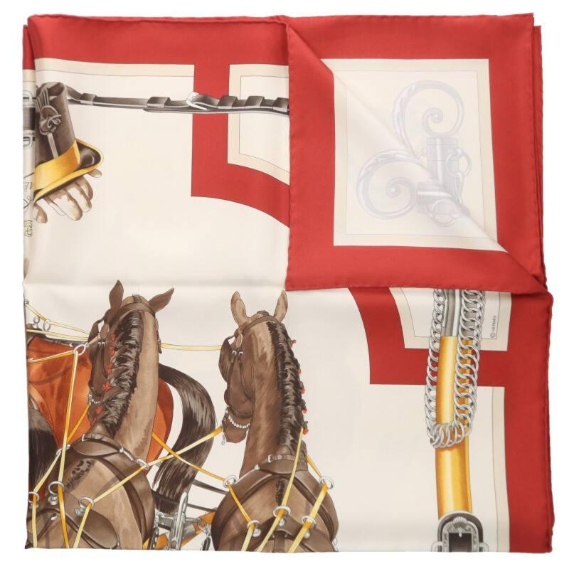Hermès HERMES Carré 90 ATTELAGE EN ARBALETE Silk Scarf (White x Red) Size: 90 [202152] [BS99] [Accessory] [Pre-owned] bb51#rinkan*A