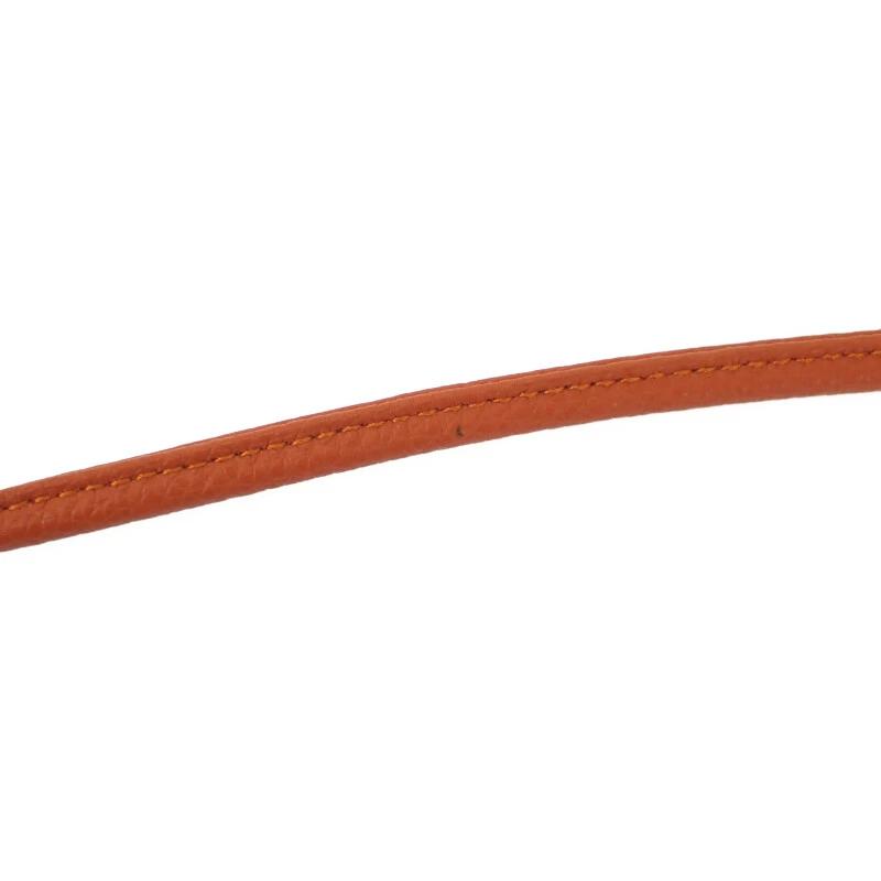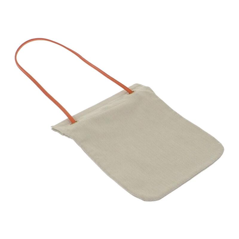ナチュラルな風合いのトワルシェブロンキャンバスに、鮮やかなオレンジレザーのショルダーがアクセントを添え、モダンで爽やかな印象を演出。肩掛けしやすいストラップは実用性も高く、ファッション性と利便性を両立しています。