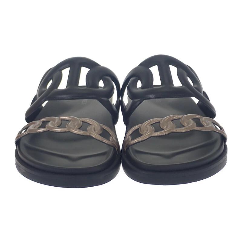 しなやかなカーフスキンと軽量なラバーソールを組み合わせ、快適な履き心地と高い耐久性を両立させた一足です。カラーはシックなブラックをベースに、エッジの効いたブロンズトーンのディテールをプラス。視線を引くアクセントとなるのが、エルメスの象徴的モチーフ「シェーヌダンクル」。