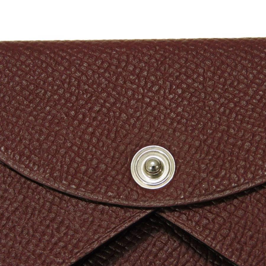 | プレス加工が施された、型押しオールレザーの1枚革で作られた「カルヴィ」スナップ式二つ折りカードケースです。 |