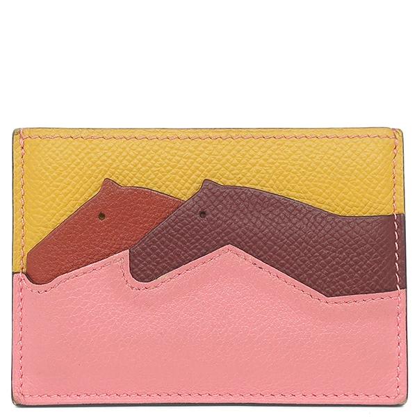 ▲クリックで拡大されますエルメス HERMES プティ シュヴォー オリゾンタル カードケース エバーカラー ヴォーエプソン ローズエテ×ルージュアッシュ×ブリック×ジョーヌアンプル 馬モチーフ D レディース 【中古】