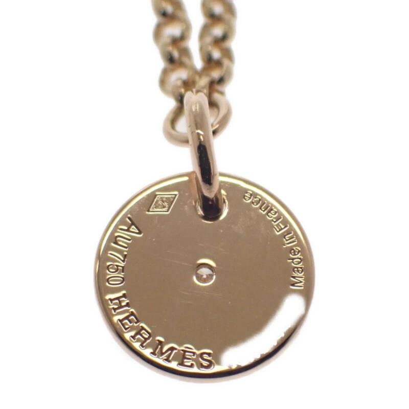 K18ピンクゴールドの優美な光沢に、上質なダイヤモンドが繊細な輝きを添え、洗練された存在感を放ちます。エクスリブリス(蔵書票)を思わせるモチーフは、エルメスの伝統的な馬具文化と知性を象徴。エレガントかつモダンな印象で、日常から特別な日まで幅広く活躍する逸品です。