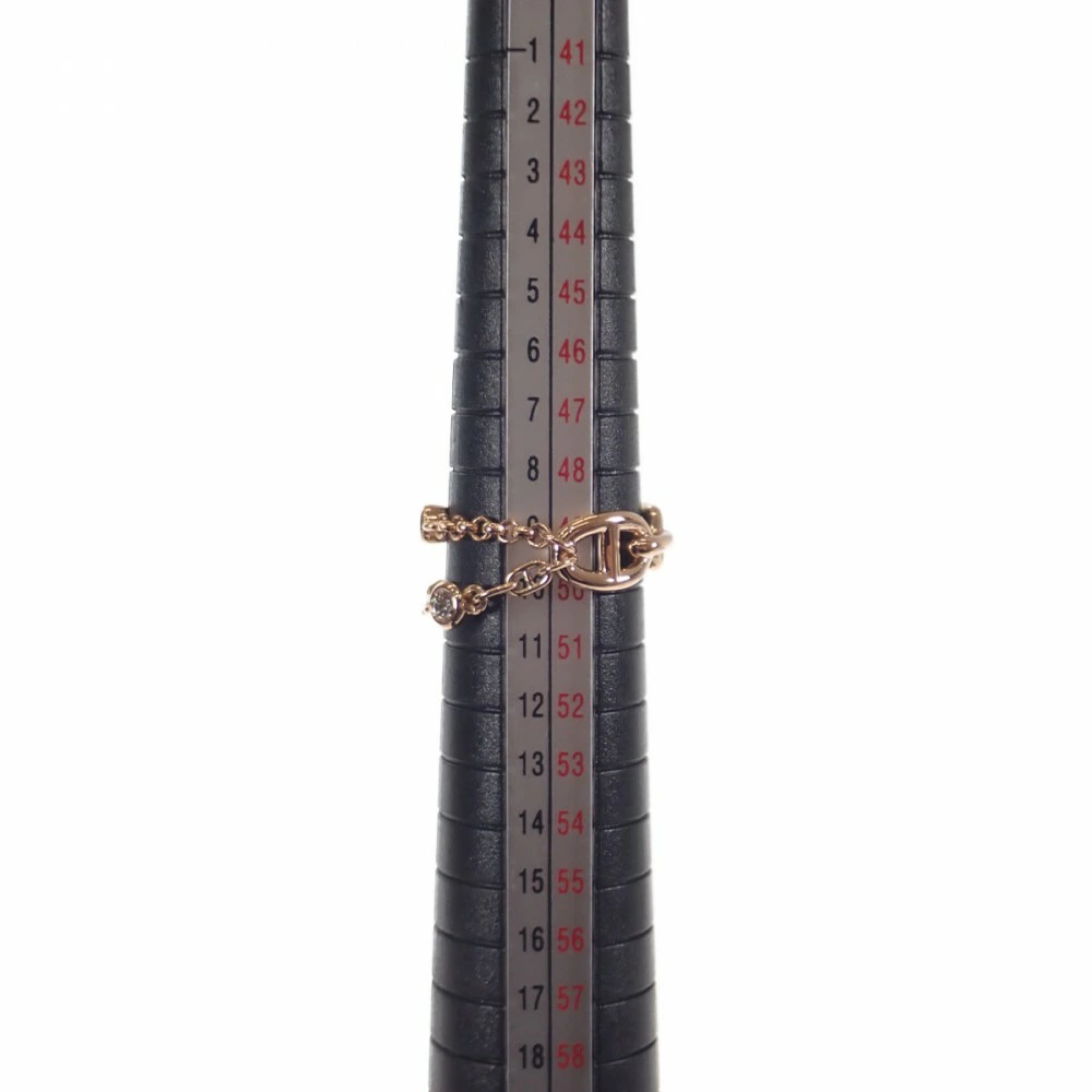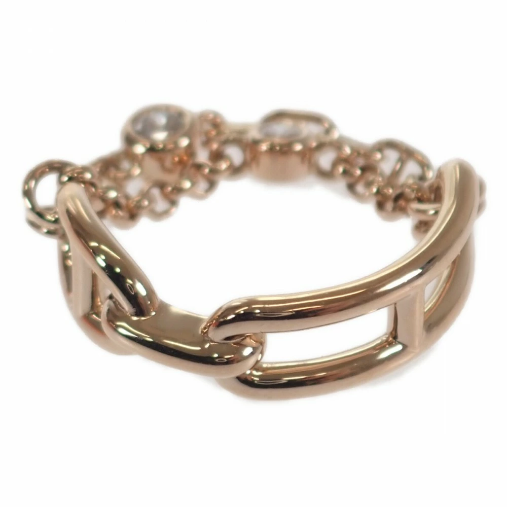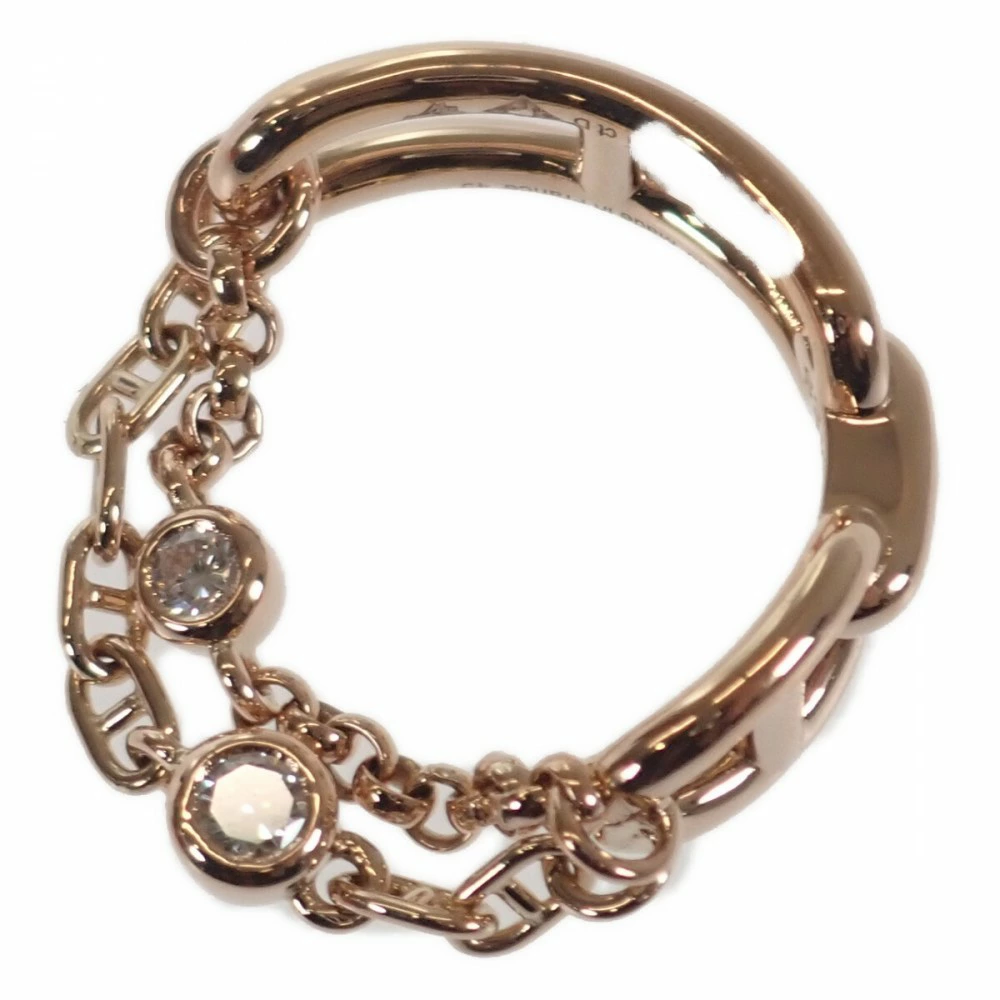 カーブを描く18金ピンクゴールドのシェーヌダンクルモチーフと、チェーンにあしらわれたダイヤ輝く指輪です。