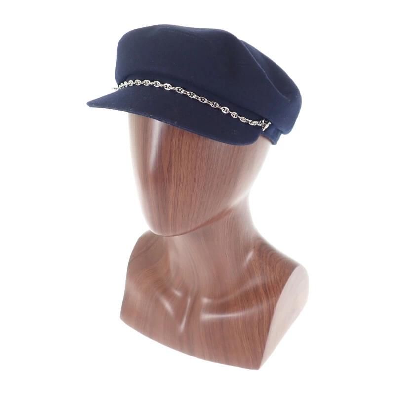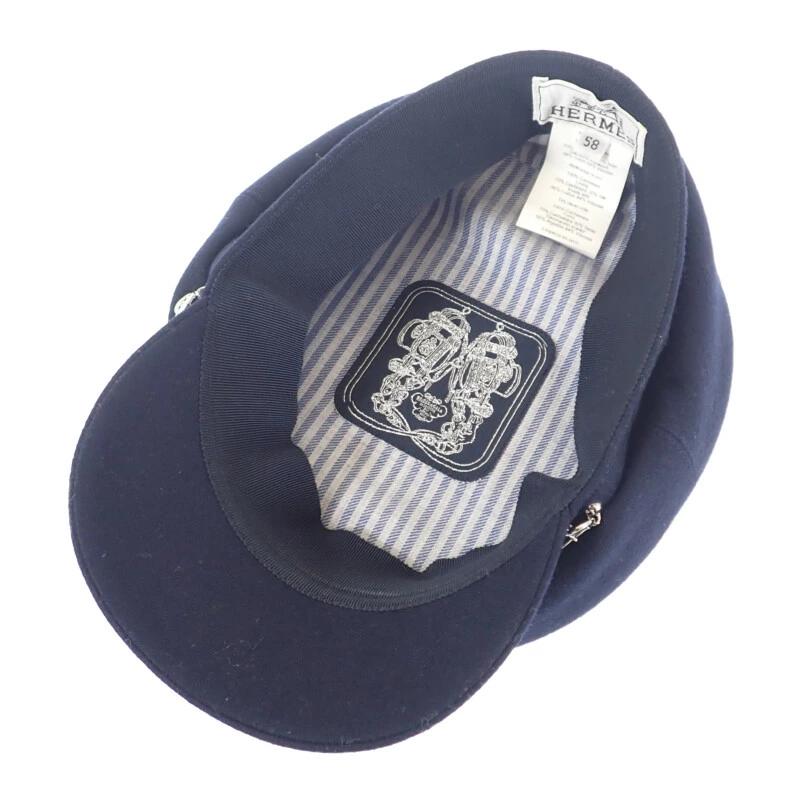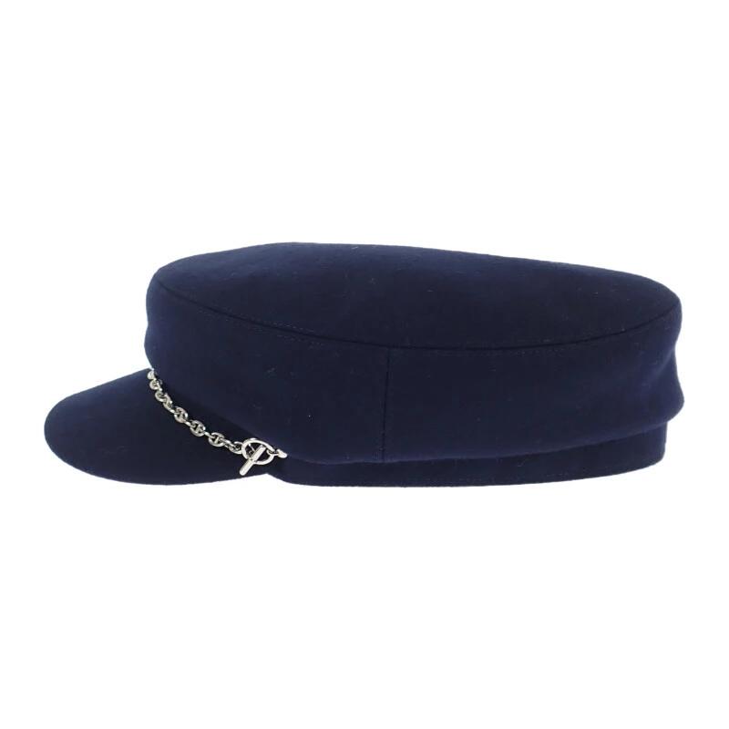 Hermès Chaine d'Ancre Hat, Size 58, Cashmere Newsboy Cap, Navy Blue, Silver Hardware, Women's, Pre-owned, Rank A