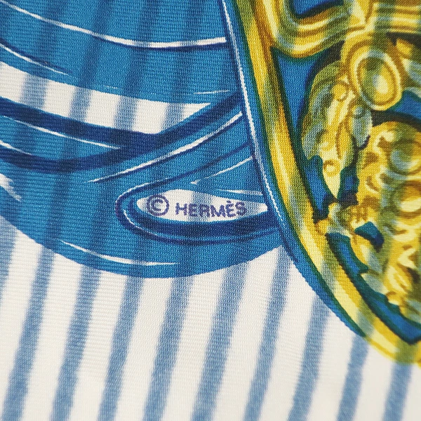 エルメス HERMES カレ90 CARRE カレ スカーフ シルク ホワイト×ブルー 【BRIDES de GALA/ブリッド ドゥ ガラ】 - レディース定番 人気 美品 【中古】