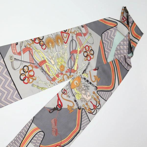 | スカーフHERMES クラヴァット型 シルク騎馬 ハーネス カレ90レディース グレー |