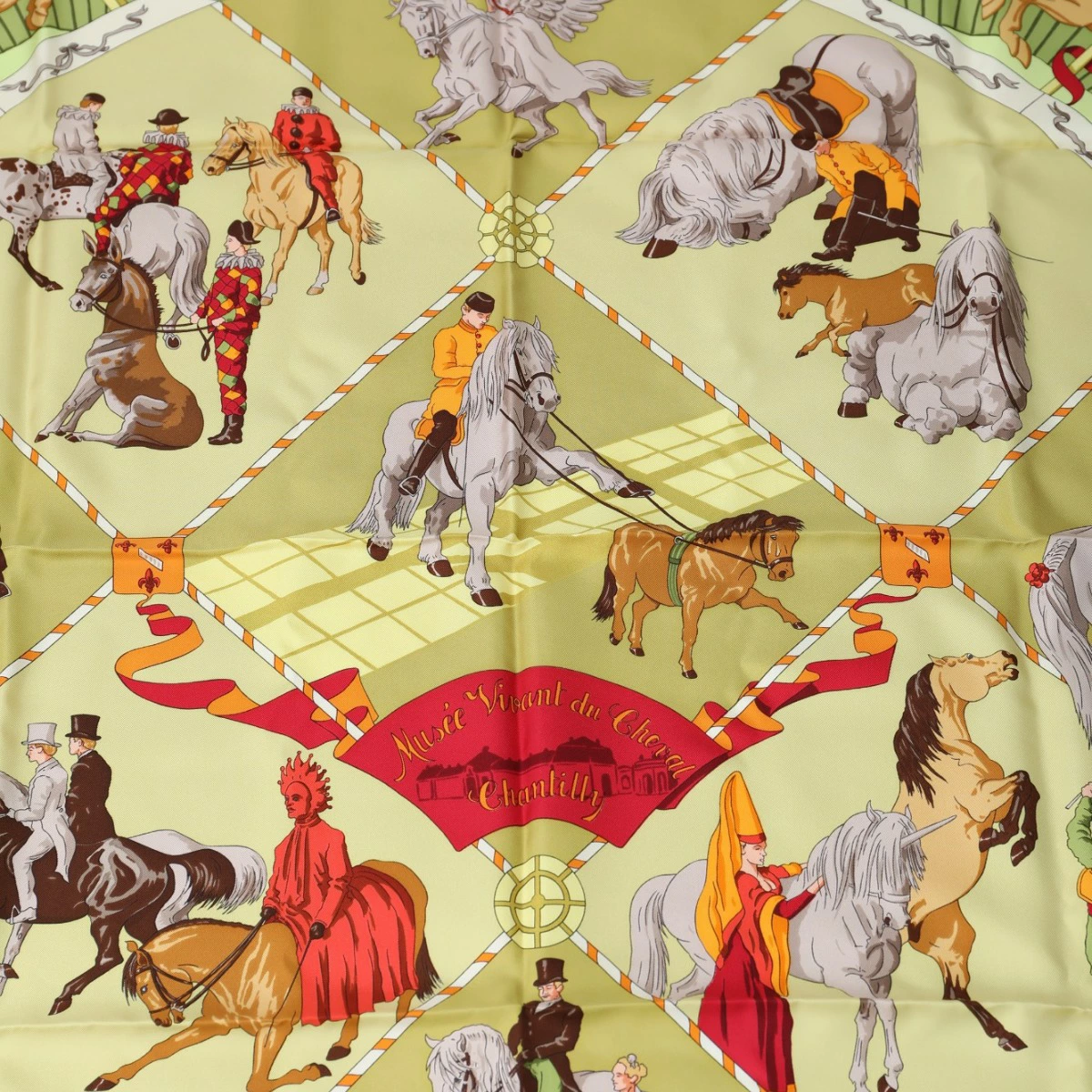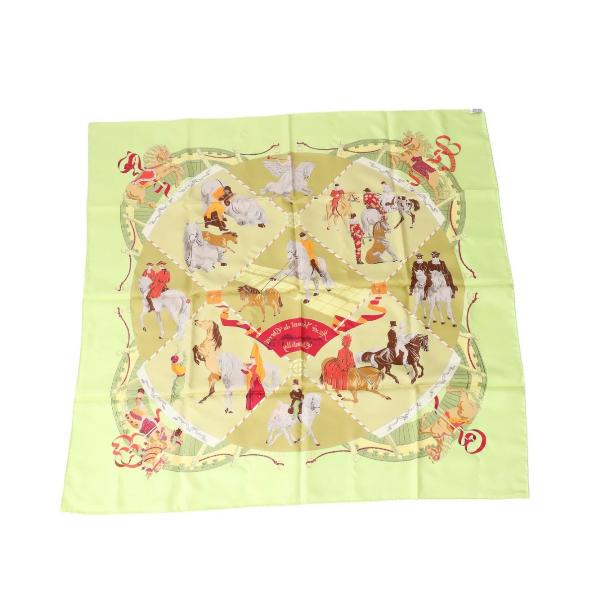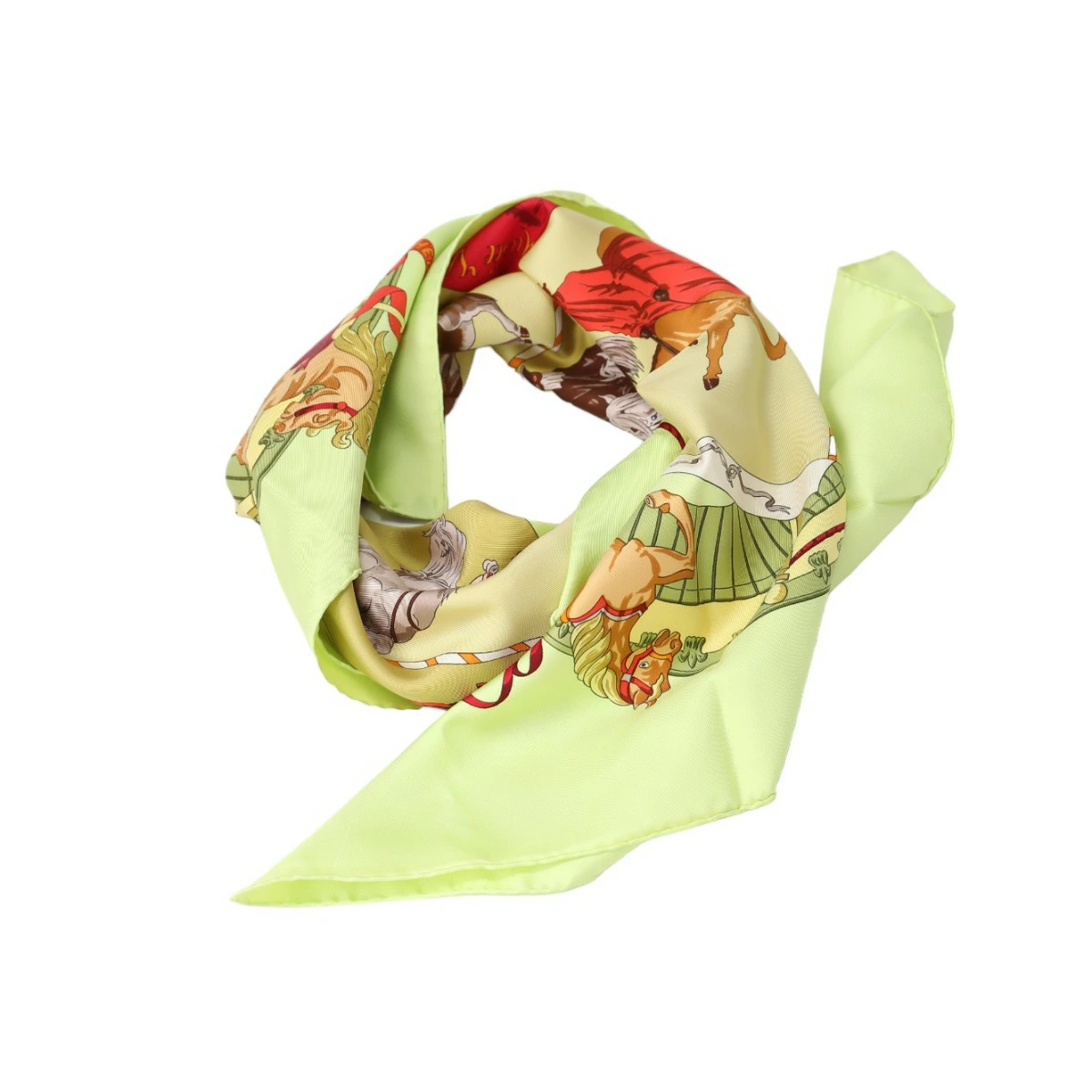 | スカーフHERMES ストールカレ90 シャンティイ城馬の博物館レディース グリーン |