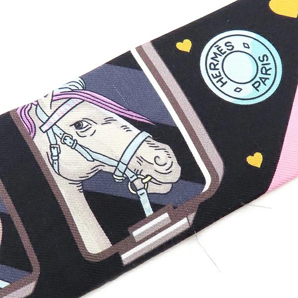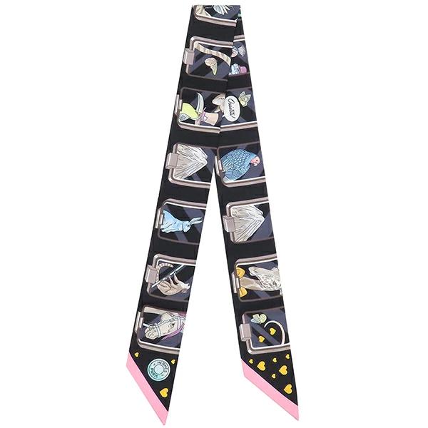 ▲クリックで拡大されますエルメス HERMES ツイリー ツイリー スカーフ シルク ノワール×ローズ×グリ 【HERMES STORY/エルメスストーリー】 - レディース 【中古】