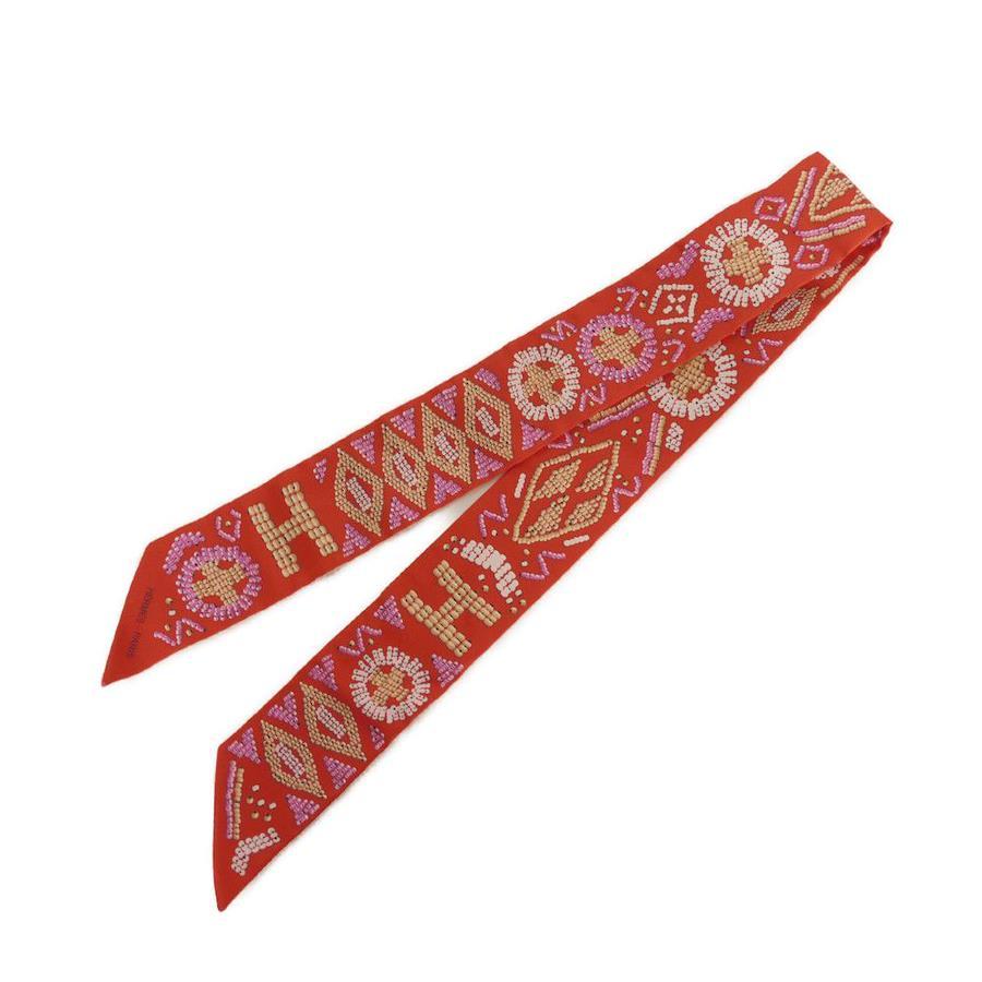 シルク素材にエルメスの「Kelly en perles(真珠でできたケリー)」モチーフがデザインされた「ツイリー」スカーフです。 |