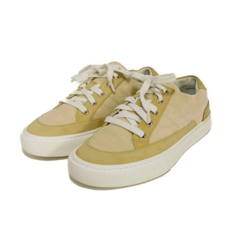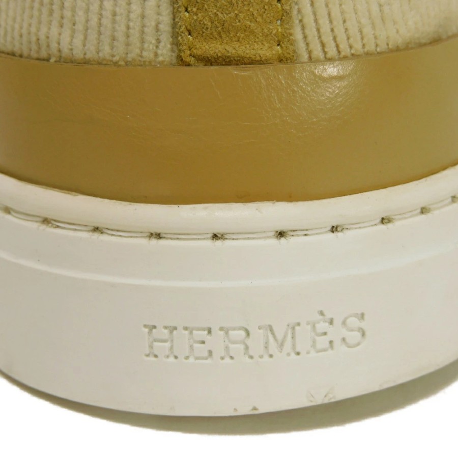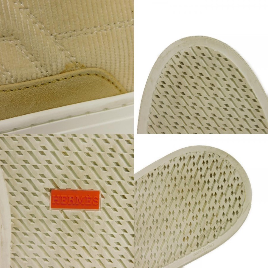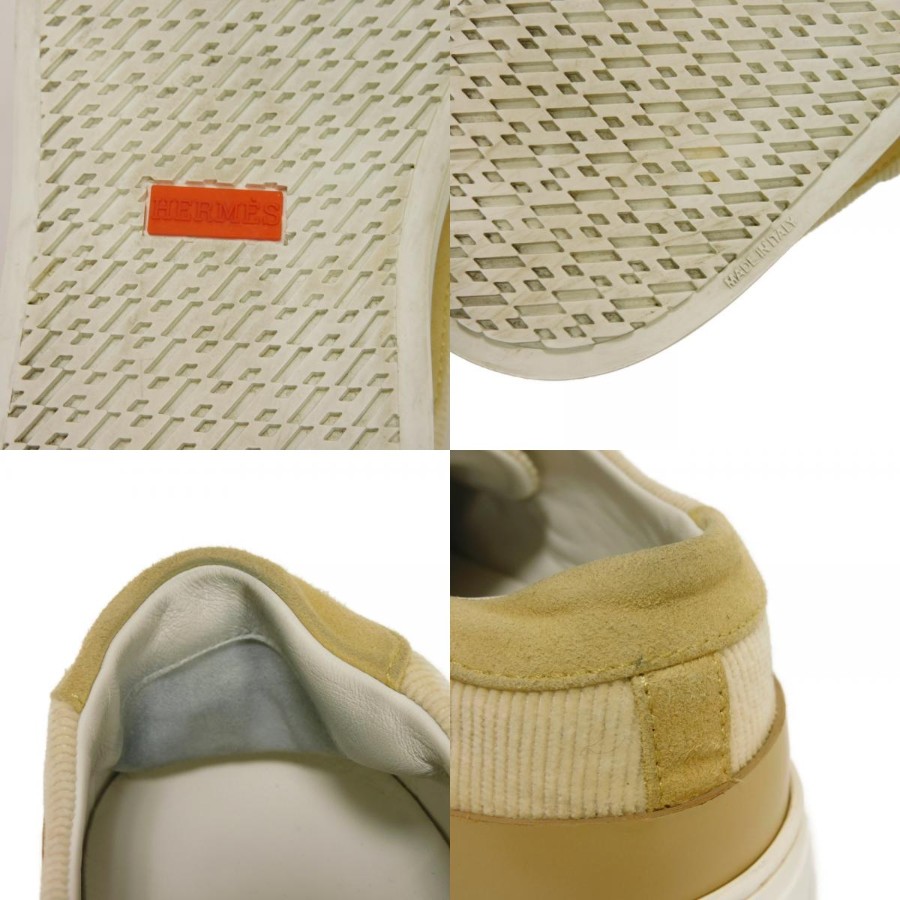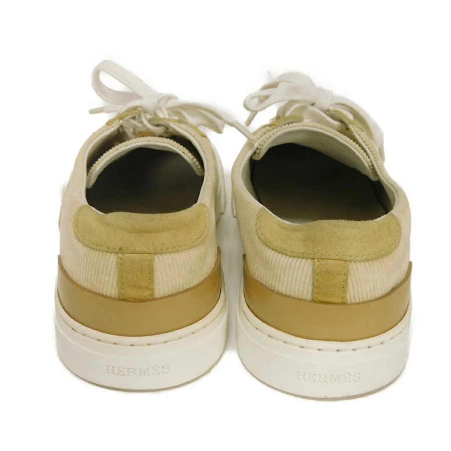 | エルメスのHマークがエンボス加工された、コーデュロイレザーにスエードレザーを組み合わせた「ディープ ロートップ」ローカットスニーカーです。 |
