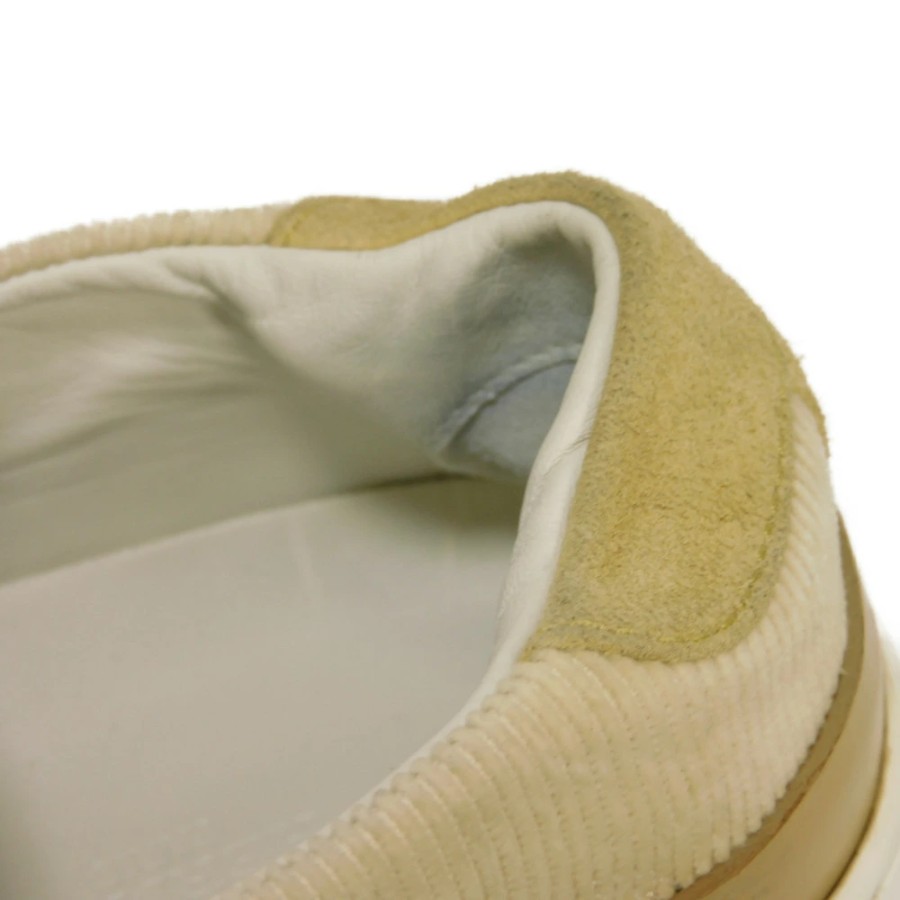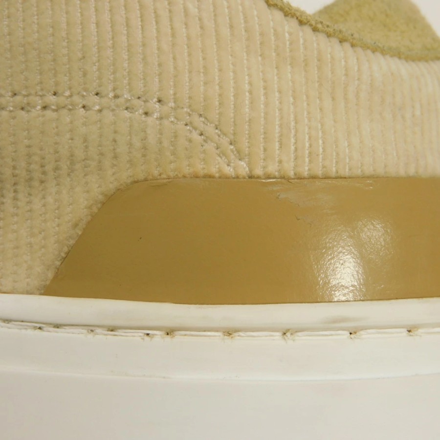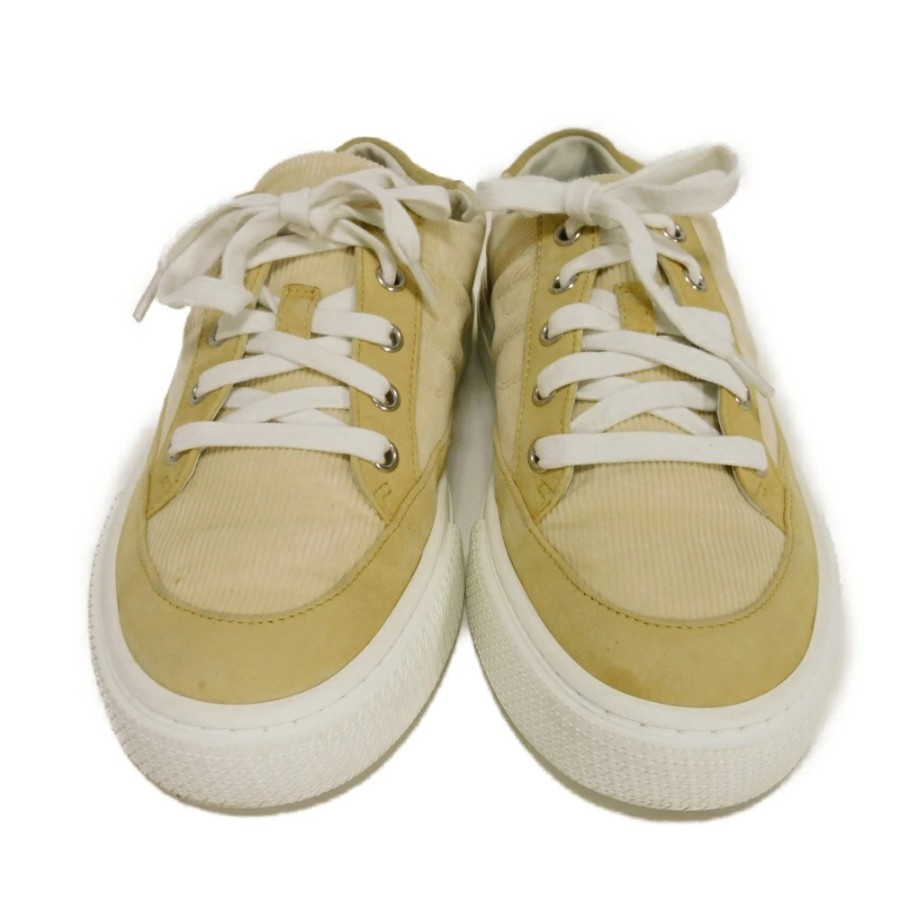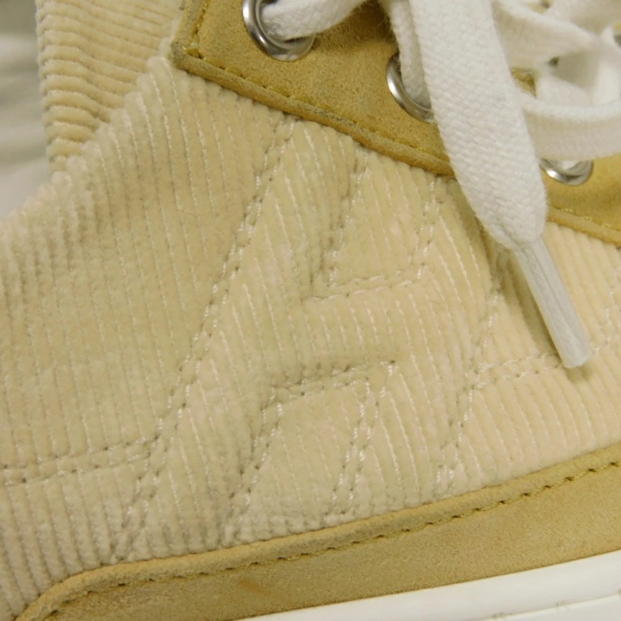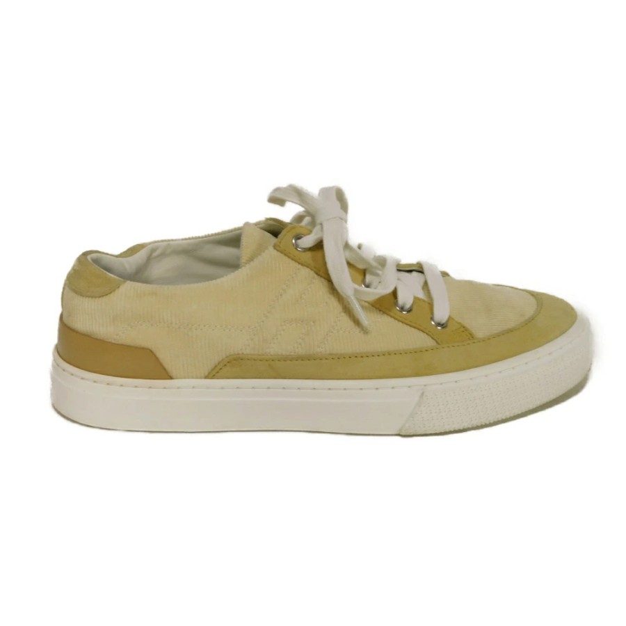 | エルメスのHマークがエンボス加工された、コーデュロイレザーにスエードレザーを組み合わせた「ディープ ロートップ」ローカットスニーカーです。 |