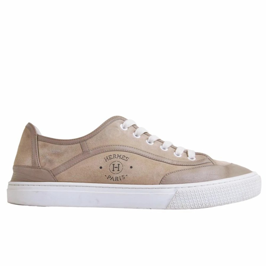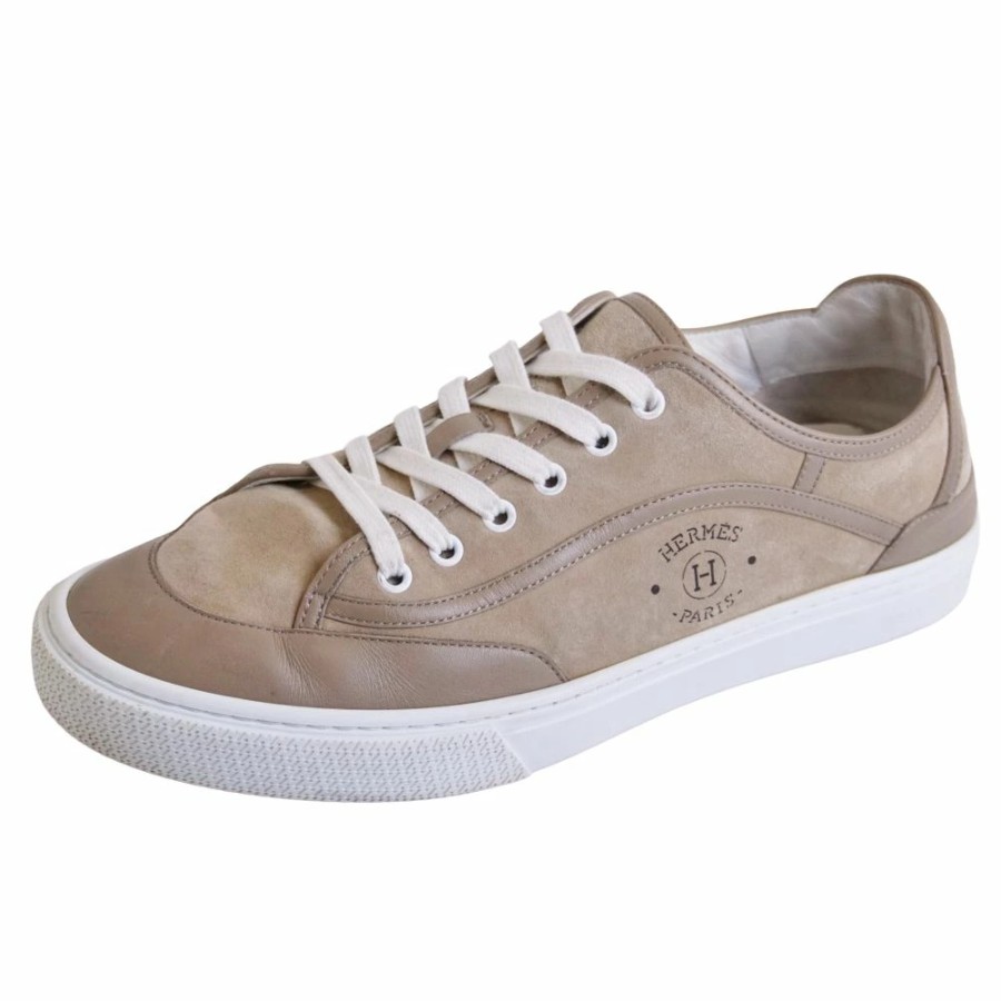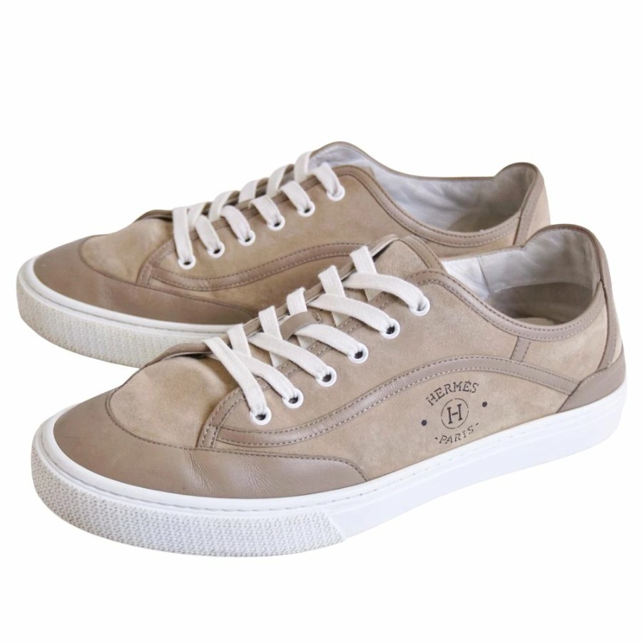 エルメス HERMES スニーカー 2023 レースアップ GET ゲット ロゴ スエードレザー シューズ メンズ イタリア製 ベージュ サイズ43(28cm相当)