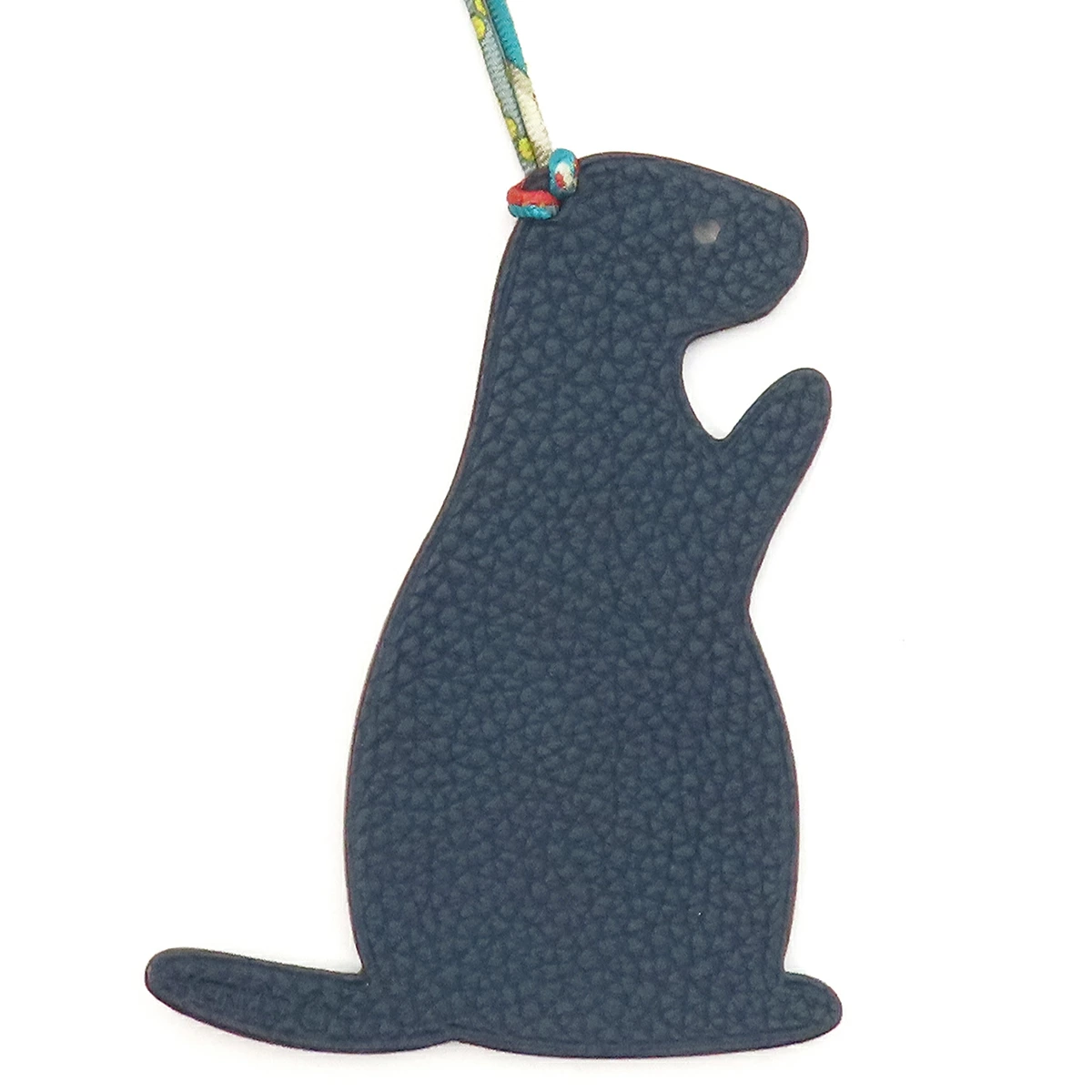 Pre-owned Hermès Petit H Guinea Pig Togo Epsom Leather Bag Charm in Blue and Brown.