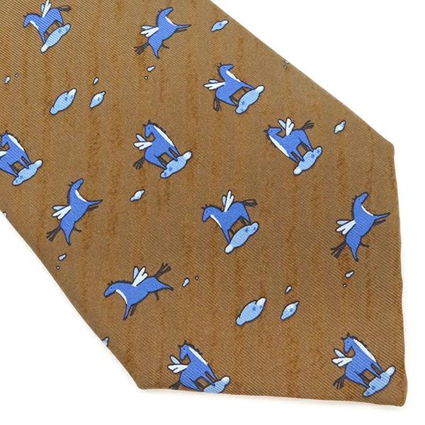 検索用キーワード:【【 エルメス HERMES ネクタイ ペガサス 9cm シルク ブラウン×ブルー茶 青 馬 ホース - メンズ【箱】 定番 人気 美品 【中古】】 【エルメス HERMES】【-】