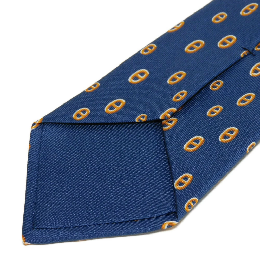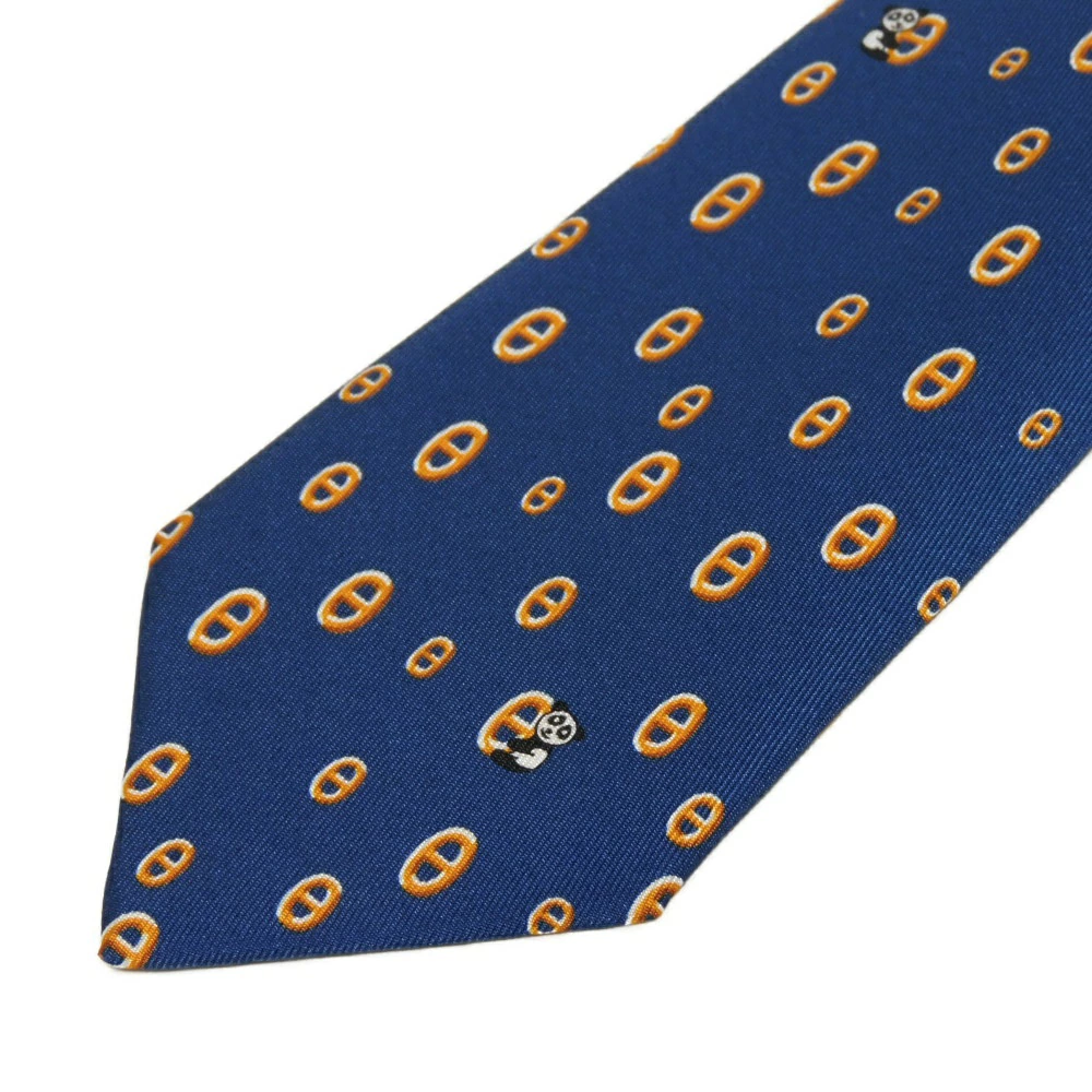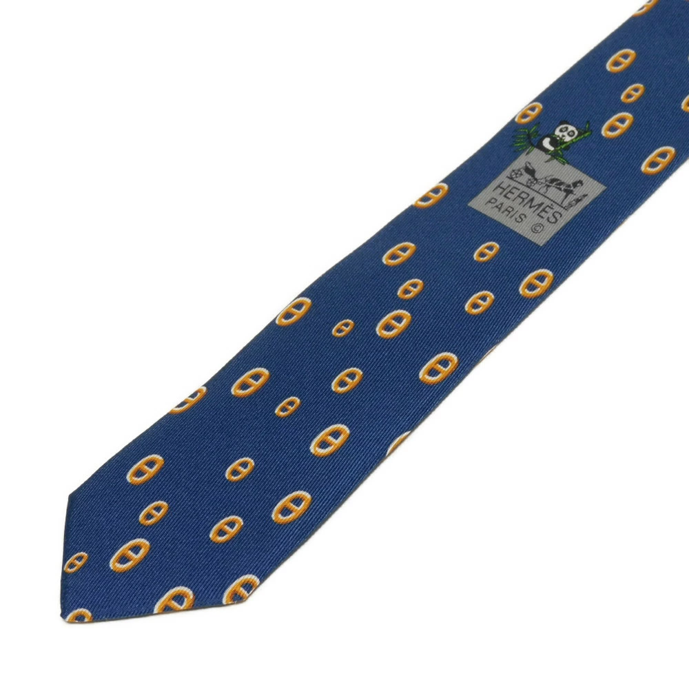 | シルク素材にエルメスのシェーヌダンクルのコマモチーフがデザインされた「マイヨン パンダ シルクタイ」ネクタイです。 |
