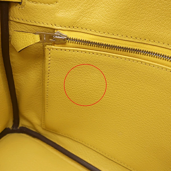 【外側】表面に僅かな点傷やラメの付着、一角やフチに僅かな擦れ、ハンドルに薄汚れ、金具に擦れ【内側】僅かな薄汚れや押し跡、フラップ根元のコバに僅かなヒビ【におい】僅かな保管臭【刻印の場所】内側左側面【保護シール箇所】ターンロック根元、ベルト留め、ベルト金具、底鋲(一箇所)、カデナ