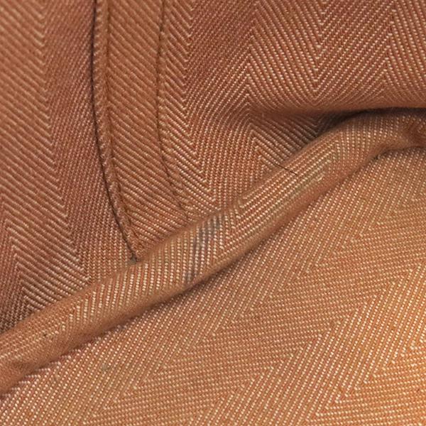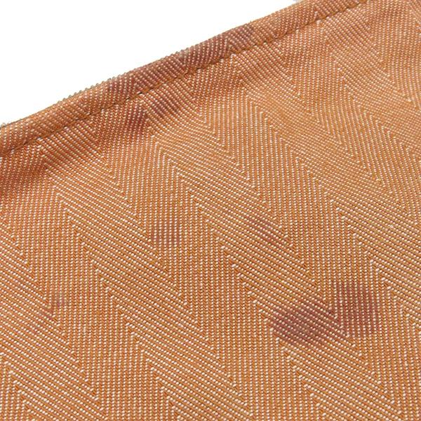【外側】表面に擦れ、レザーに擦れや擦れ傷、薄汚れや押し跡、シワ、四つ角に擦れや剥げ、コバにヒビ、ハンドルに黒ずみ、ポーチにシミ、金具に擦れや小傷、錆【内側】擦れや毛羽立ち、薄汚れ【におい】保管臭