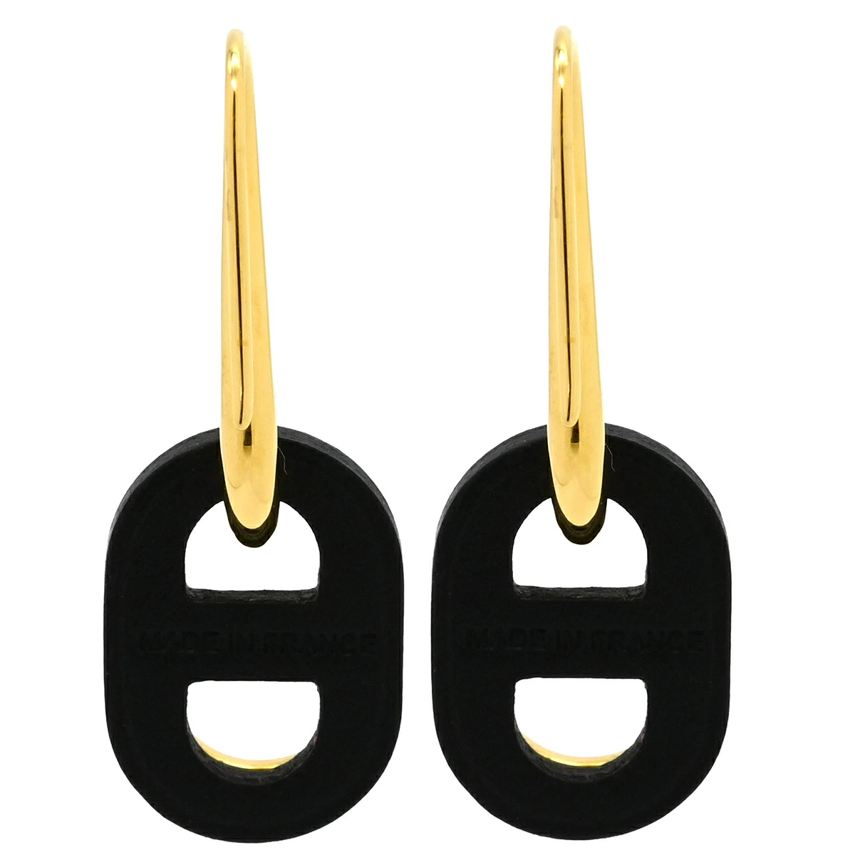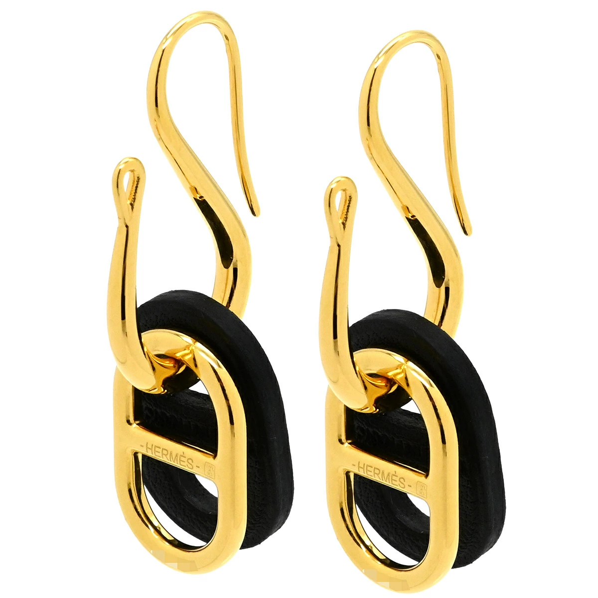 ▲クリックで拡大されますエルメス HERMES オーマイヨン PM ピアス GP スイフト ブラックXゴールド シェーヌダンクル ゴールド金具 - レディース 【箱】定番 人気 美品 【中古】