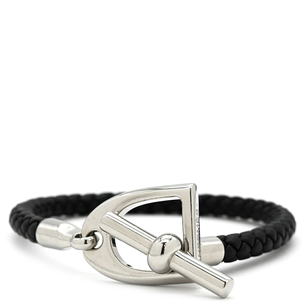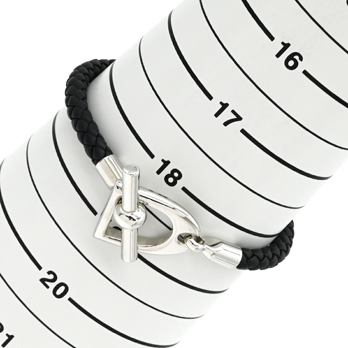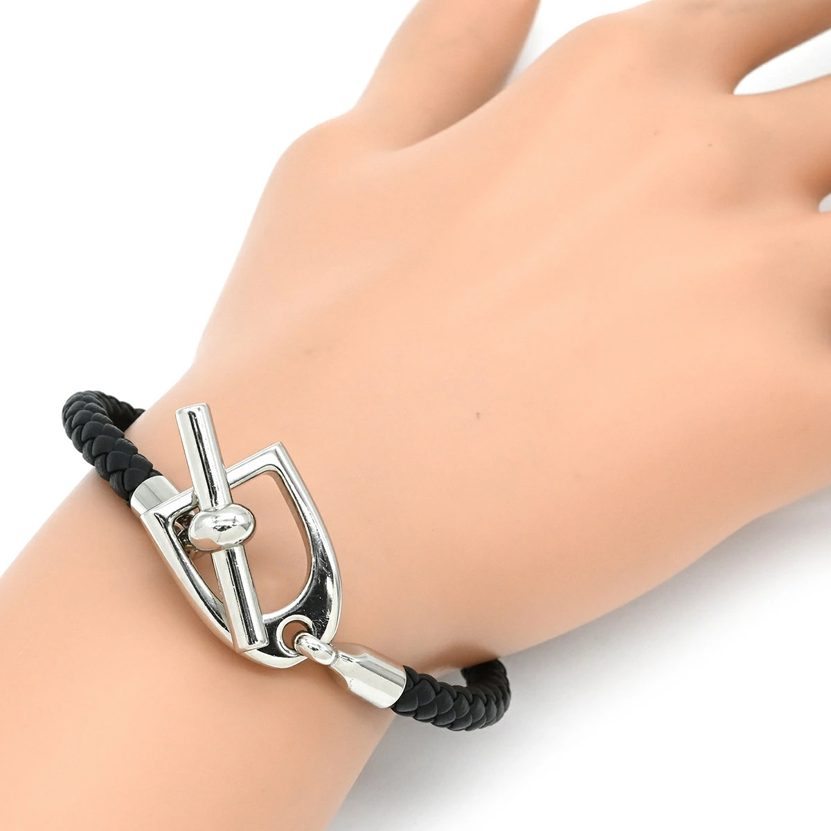 ▲クリックで拡大されますエルメス HERMES エトリエ エトリエ ブレスレット メタル レザー ブラックXシルバー レザーブレスレット 黒 あぶみモチーフ レディース 【箱】定番 人気 美品 【中古】